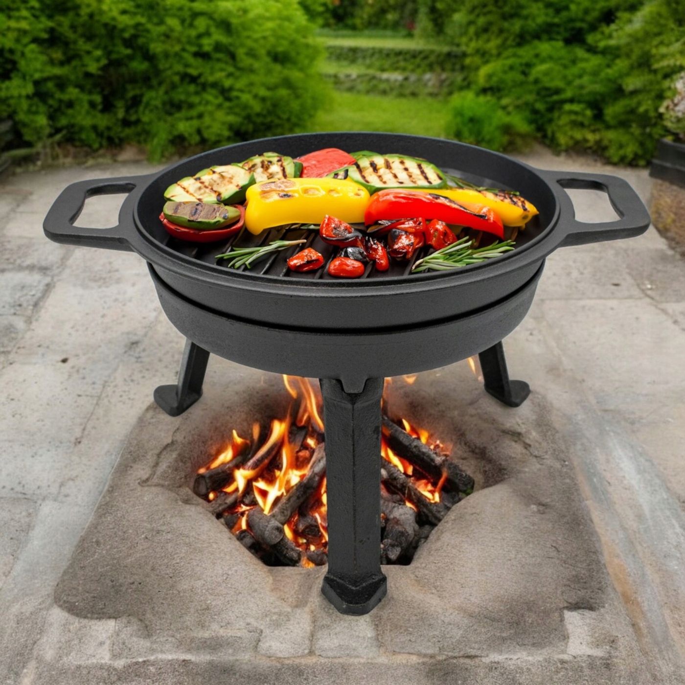 ✔ тверда, незнищенна конструкція - 100% товщиною чавуну, стійкий до пошкодження та високих температур. Універсальне використання - ідеально підходить для багаття, гриля, газу, електричної та індукційної плитки. Споживання енергії.