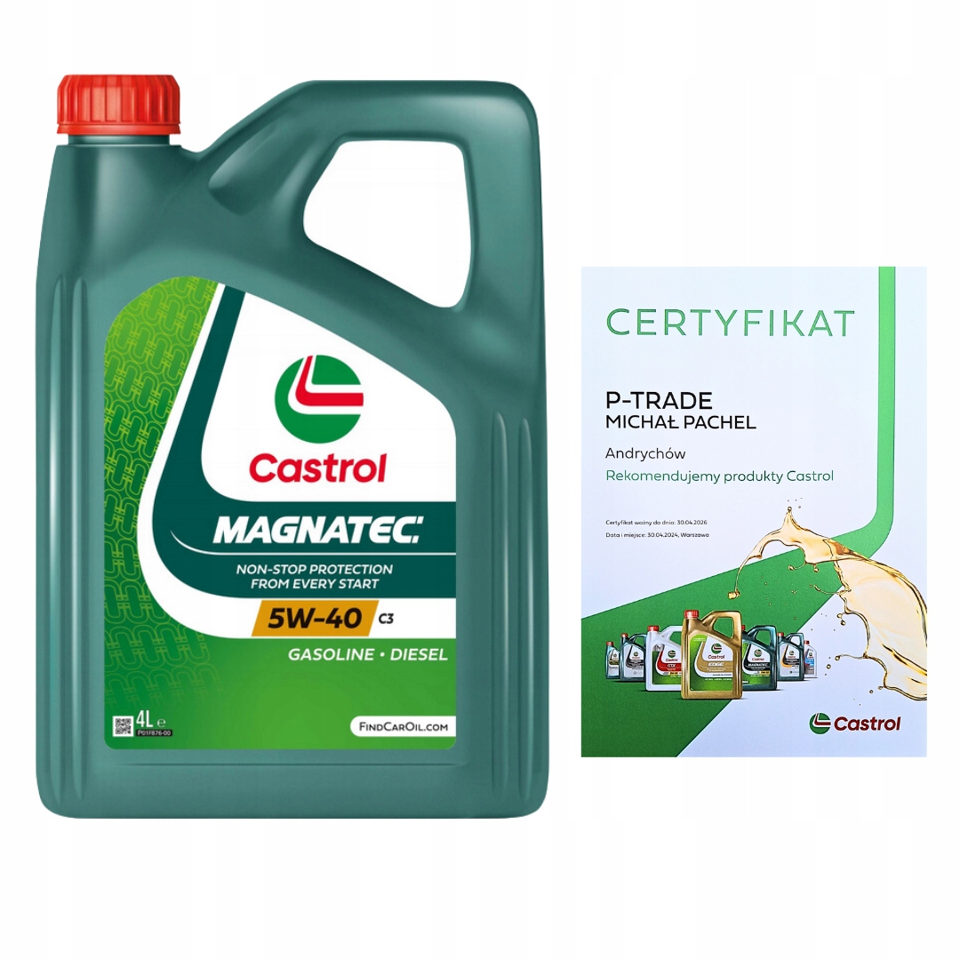 Оплачивая «Castrol Magnatec 5W-40 C3 4L - сертификат», вы можете быть уверены, что данный товар из каталога «Синтетические» будет доставлен из Польши и проверен на целостность. В цене товара, указанной на сайте, учтена доставка из Польши. Внимание!!! Товары для Евросоюза, согласно законодательству стран Евросоюза, могут отличаться упаковкой или наполнением.