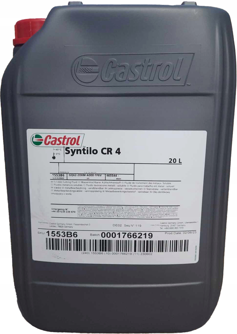 Castrol Syntilo CR 4 - це синтетична обробка рідини, розроблена спеціально для операції з подрібненням карбіду вольфраму. Крім того, його можна використовувати для піску сталі. Це створює прозорий, міцний розчин як у твердій, так і в м'якій воді. Syntilo CR 4 має дуже хороші антикорозійні властивості у поєднанні з високою стійкістю до забруднення бактерій.