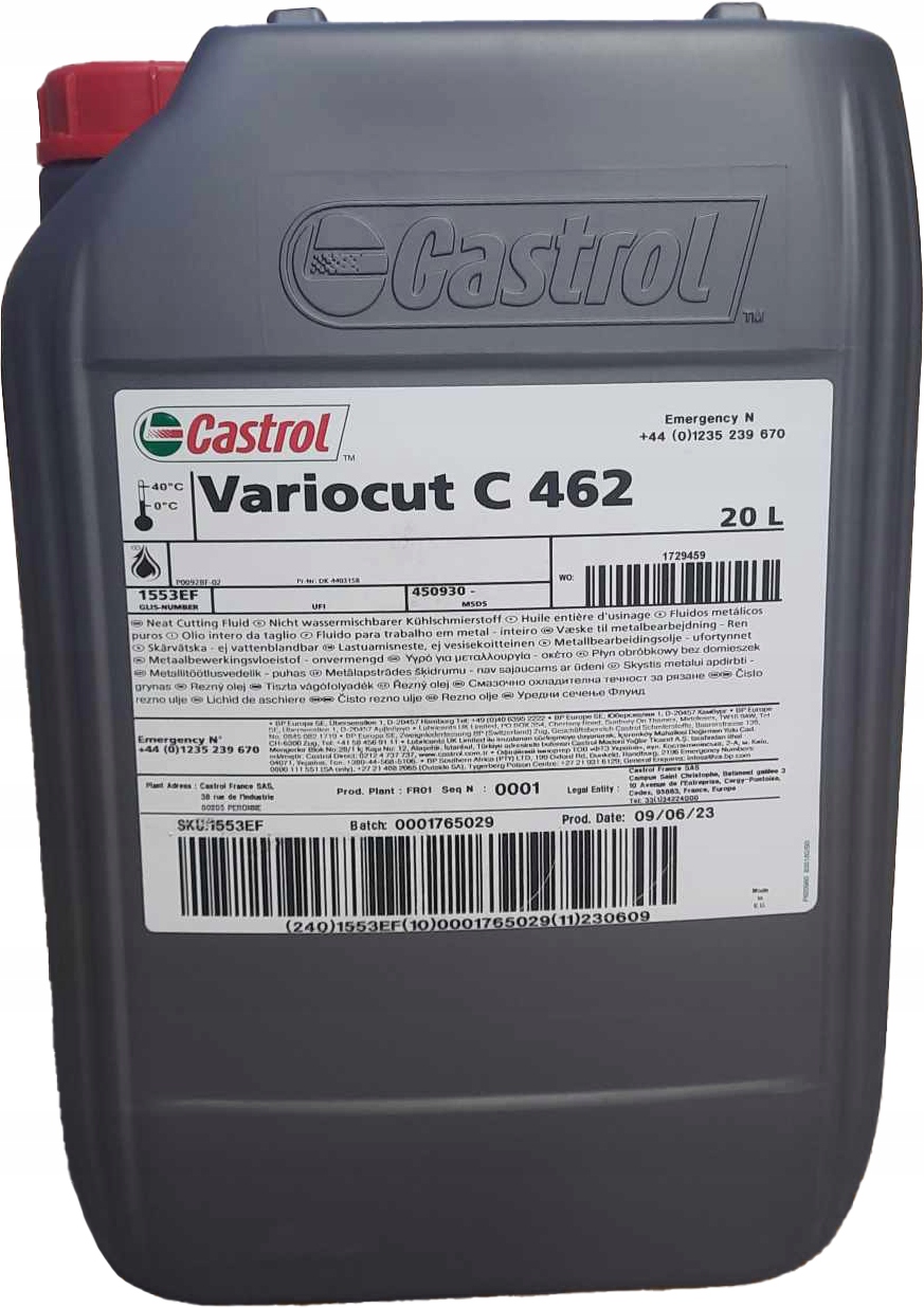 Castrol Variocut C 462 — це машинне масло, яке не містить сполук хлору та важких металів.