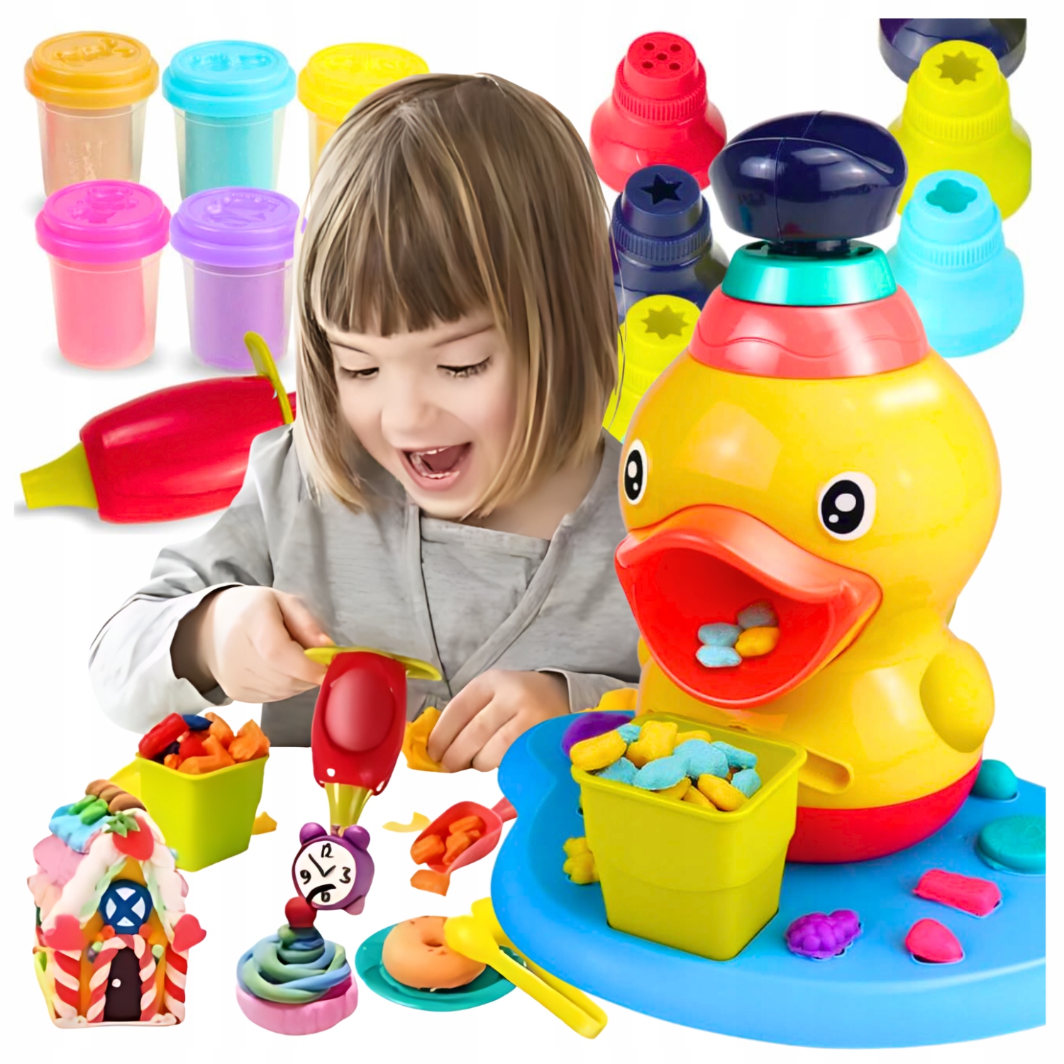 Набір Color Mud Duck Set — це унікальна іграшка 3-в-1, завдяки якій діти можуть створювати попкорн, макарони, печиво та міні-бургериз різнокольорового тіста.