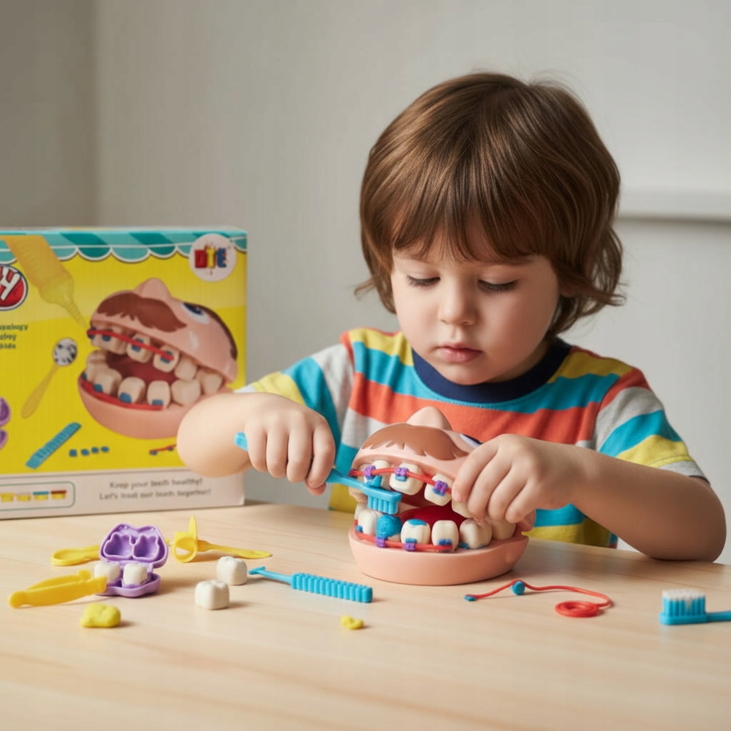 Цей барвистий набір пластикової маси та стоматологічних аксесуарів — це не тільки розвага, але й навчання через досвід.