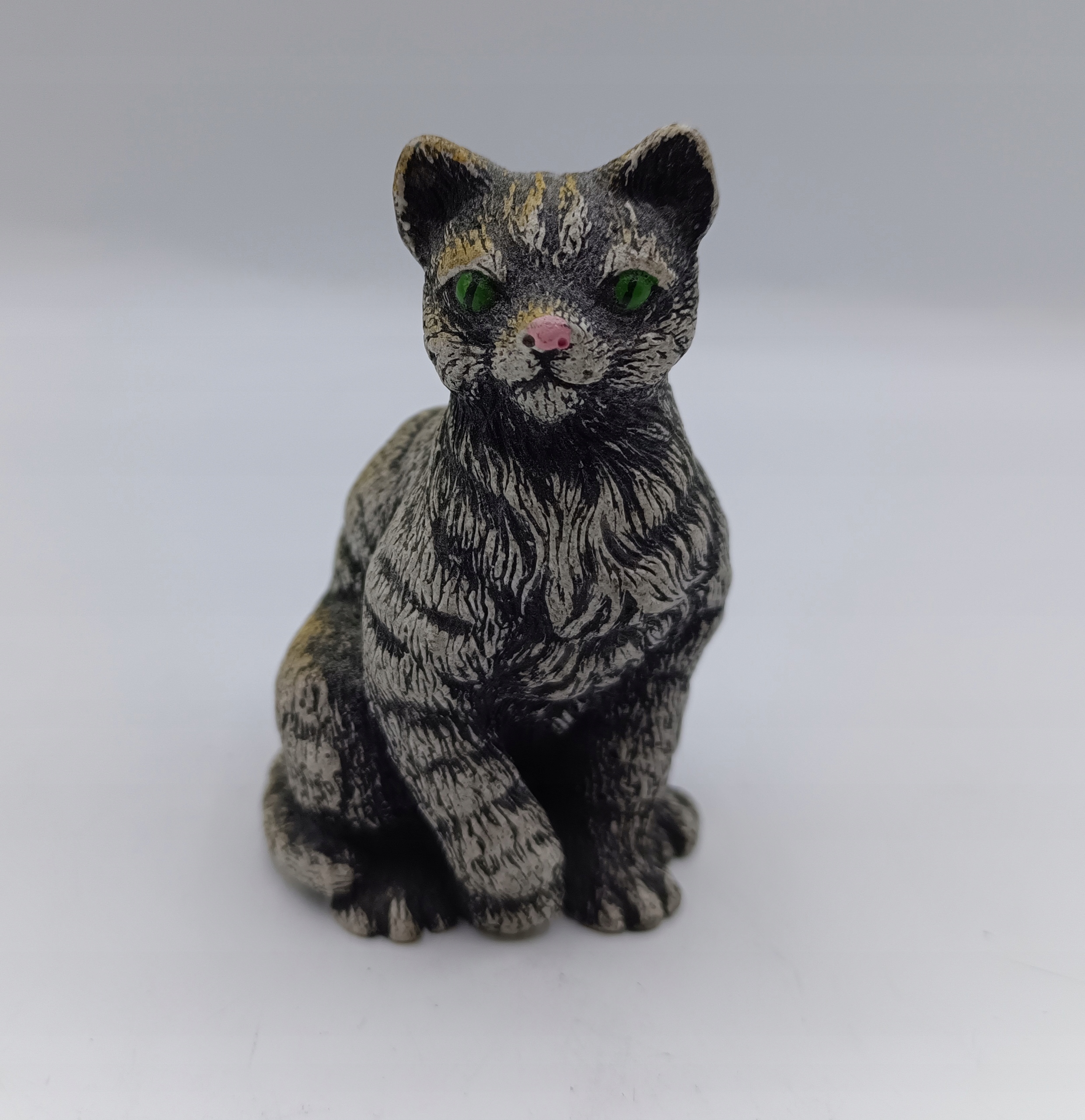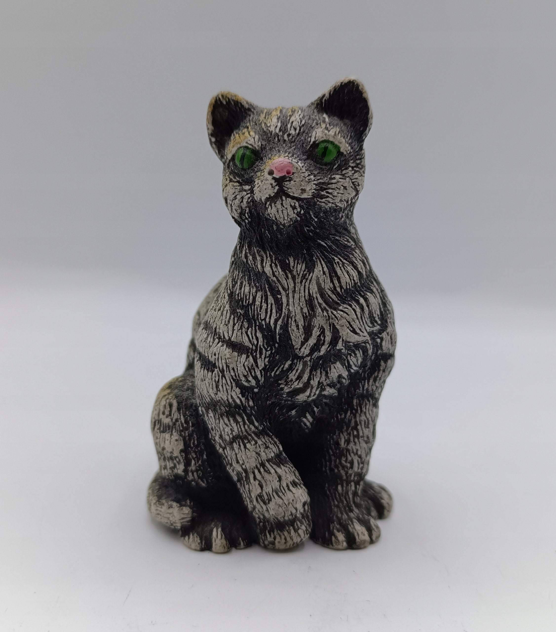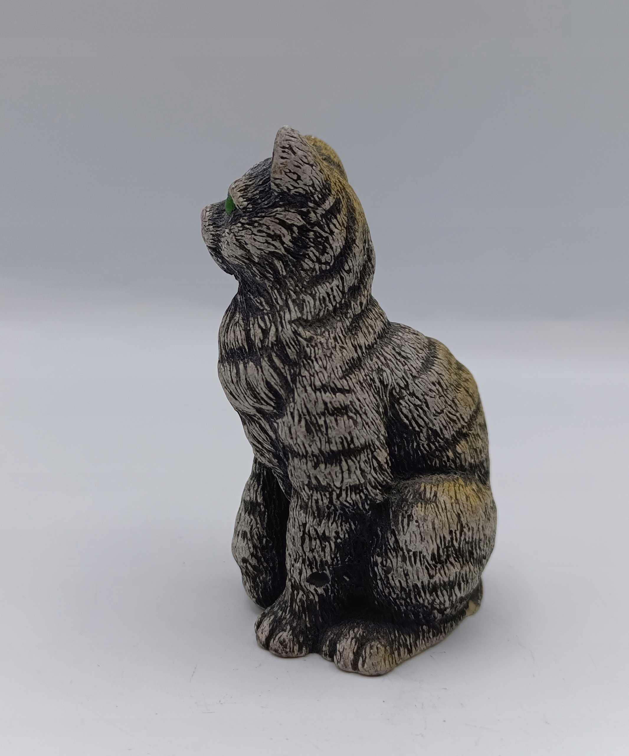Cat Cat з смужками - статуетка колектора - приємні зелені очі - 7,7 см