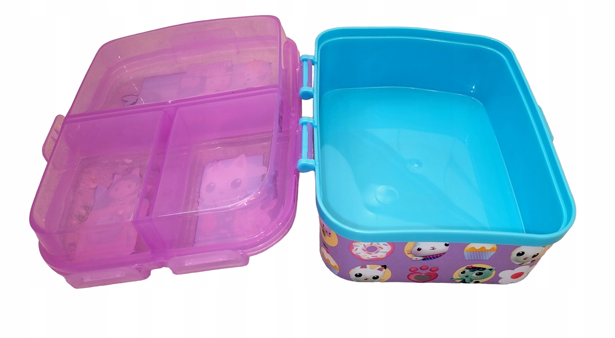 ➡️ Оригінальна і практична бутербродниця з відділеннями, щоб діти могли взяти перекуси до школи, парку чи подорожі. Виготовлений із міцного пластику, а оскільки він прикрашений привабливими візерунками, натхненними персонажами їхніх улюблених казок, малюкам сподобається брати його з собою куди завгодно. Ви можете використовувати його як органайзер для зберігання та транспортування ваших маленьких іграшок.