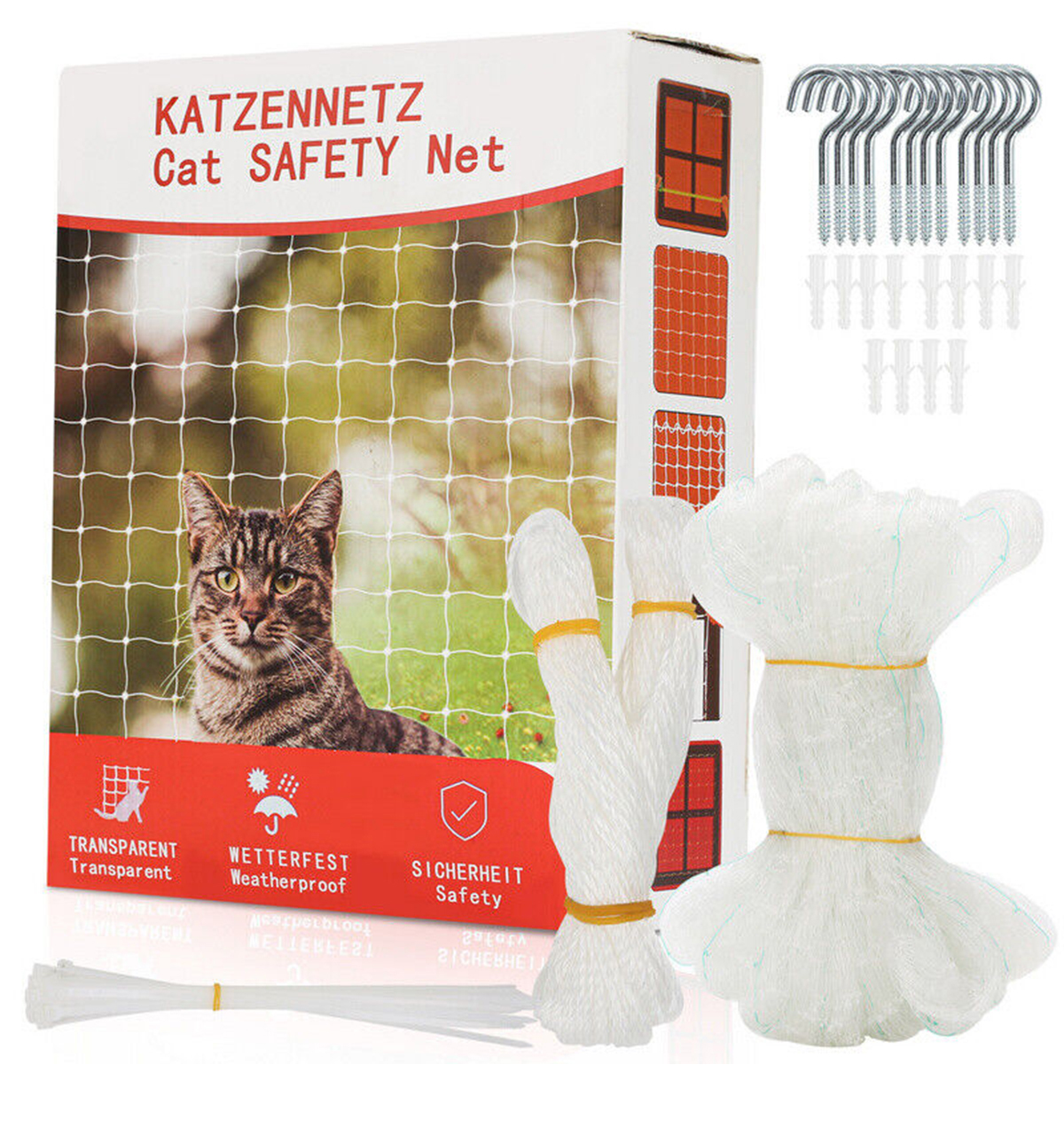 ✔️【Простий монтаж】Укриття для котів на балконі легко встановити. У комплект входить кріпильна мотузка (25 м), кабельні стяжки та гачки з кілочками. Вам більше не доведеться хвилюватися, що балконна сітка для котів впаде через вітер або що ваша кішка її тримає. Зауважте, що для кріплення потрібно просвердлити шурупи в стелі.