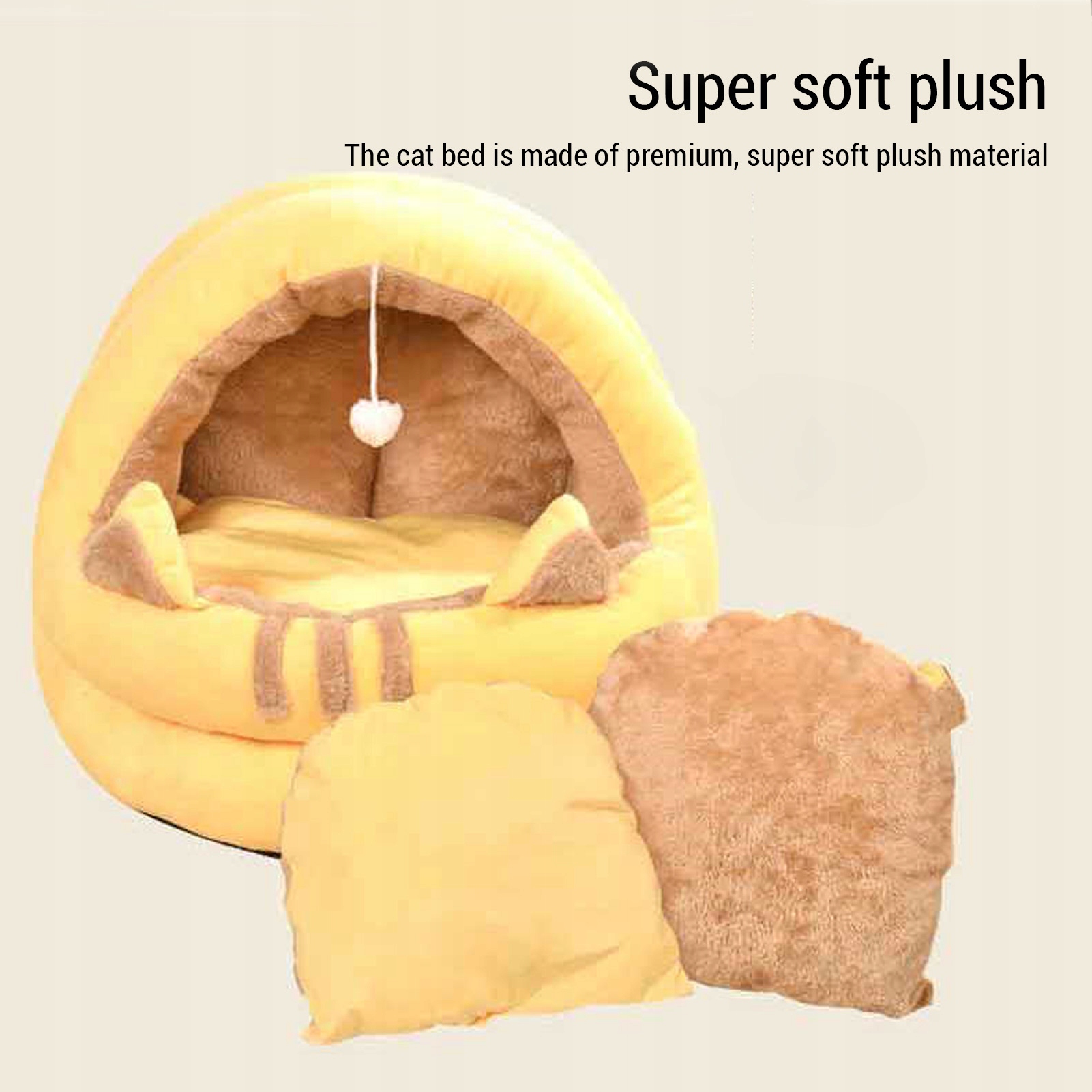 2. Плюшева дуга: виготовлена з ультра м'якої, довгої плюшевої тканини, ці домашні тварини забезпечують відчуття обіймів у хмарі. Його плюшева консистенція робить його ідеальним місцем для вашої кішки, щоб насолодитися затишною дрімотою, відмовляючись від нічного сну або просто відпочити.