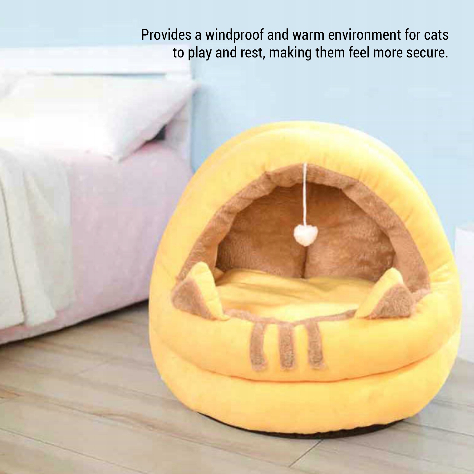 1. Застосування: Ця кішка -це частково закритий дизайн, який пропонує стійкий до вітру та теплий простір для гри та відпочинку, допомагаючи їм почувати себе безпечніше. Це особливо ідеально підходить для використання восени та зимові місяці.