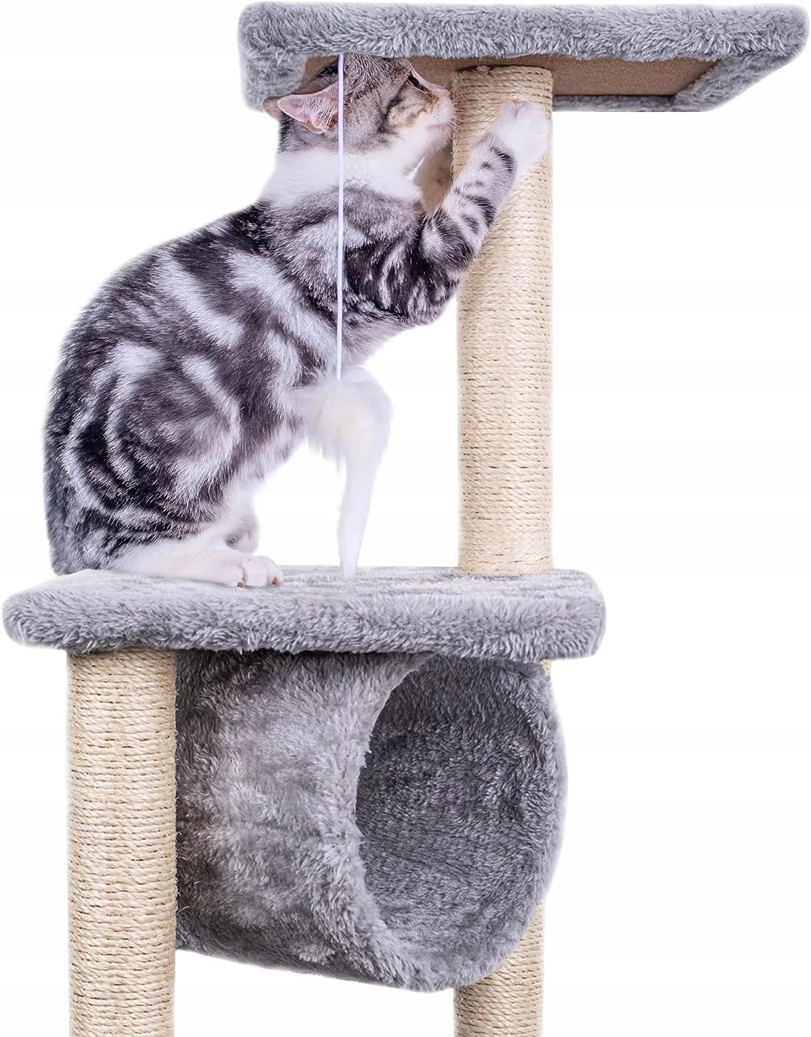 На самому верху конструкції ваш кіт знайдете чудову точку огляду. Прямо під ним на пружній нитці висить м’яка іграшка, яка гарантує години веселощів!