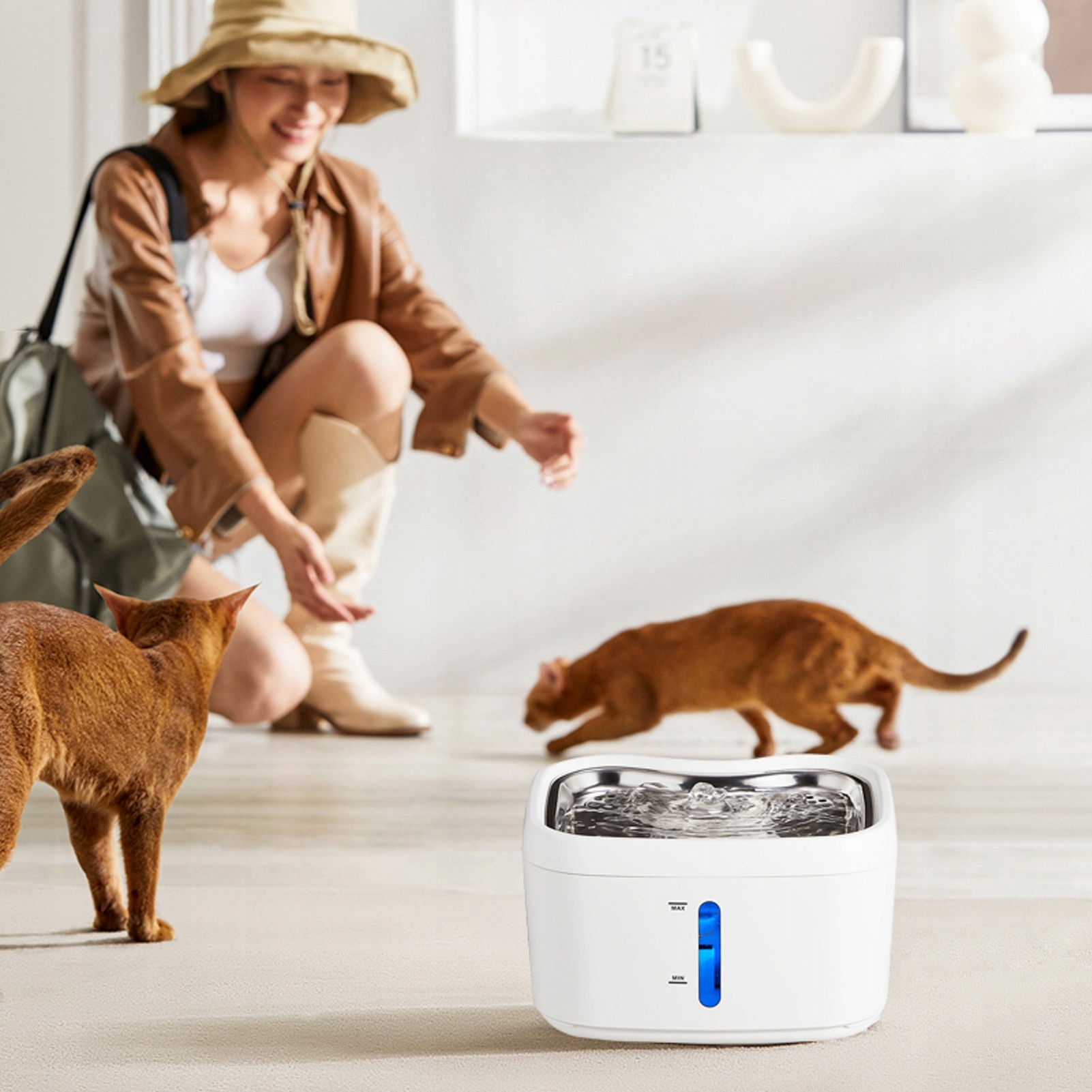 1. Розумне виявлення подвійного води: вибирайте між 2 режимами дозування води, інтелектуальним виявленням або дозуванням часу. Завдяки широкому куту виявлення 220 та діапазону 80-120 см, він також оснащений акумулятором 3000 мАг, який витримує до 30 днів, що робить його комфортним та подвійним. Тихий насос з високою ємністю: 2,5 л та тихий водяний насос ефективно вивільняє вайг -Уельс та залишки їжі. Завдяки цьому вода чиста і може задовольнити попит кішок на питну воду протягом семи днів. Водний насос споживає енергію за допомогою електромагнітної індукції з котушки датчика в основі. Поточне поділ у воді: Цей розповсюджувач кішок для кота має структуру поділу електроенергії у воді, в якій водні елементи та джерело живлення повністю ізольовані, що запобігає виробництву струму струму. Всі деталі, що контактують з водою, можна видалити для багатьох очищення. Лампи: Диспензатор оснащений синьою лампою, яка освітлюється під час роботи. За відсутності води червона лампа освітлюється як попередження. Оснащений захистом від відсутності води, запобігає сухому згоряння та ефективно захищає насос. Потрійно ефективна фільтрація: оснащена потрійною ефективною фільтрацією, активованим вуглецем з кокосового горіха та фільтрувальними елементами, виготовленими з каменю з мафан, працює для адсорбції, фільтрації, пом'якшення та очищення, вирішення проблеми липкої біоплівки, знайденої у пристроях вод. 304 Поїдо з нержавіючої сталі забезпечує гігієну вашої кішки.