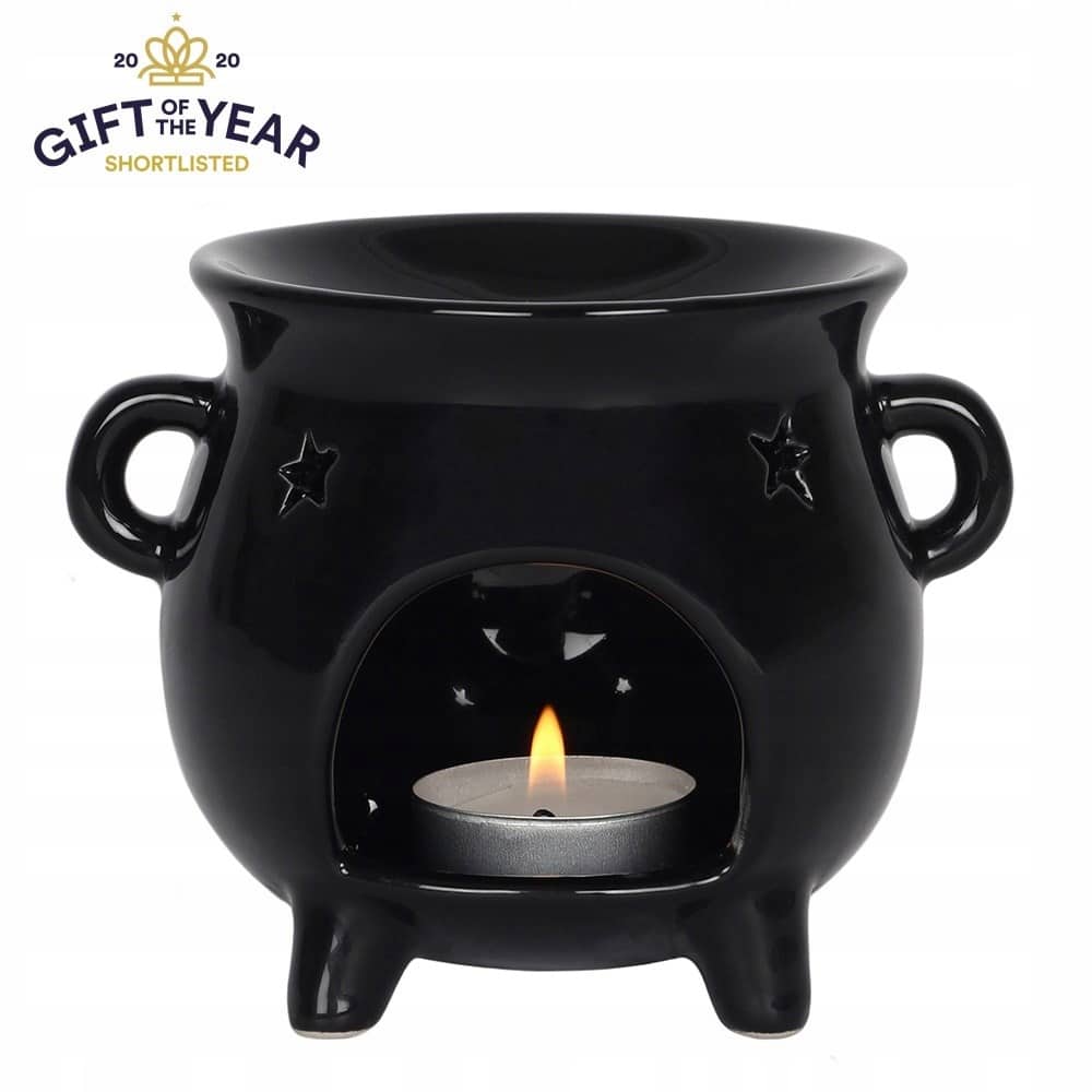 Натхненням для цього масляного пальника став дизайн чорного казана з вирізаними деталями у формі зірки. Чудова ідея подарунка для тих, хто цікавиться чаклунством або магією. Цей предмет також можна використовувати як воскоплав, однак під час додавання воску рекомендується враховувати розмір і глибину чаші, щоб він не вийшов за край під час плавлення.