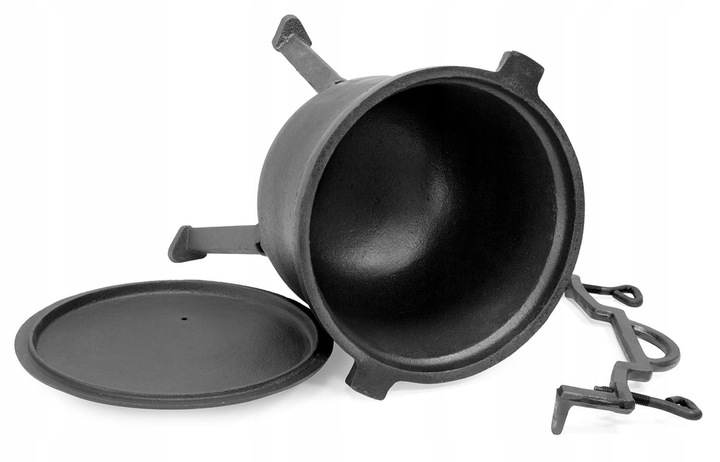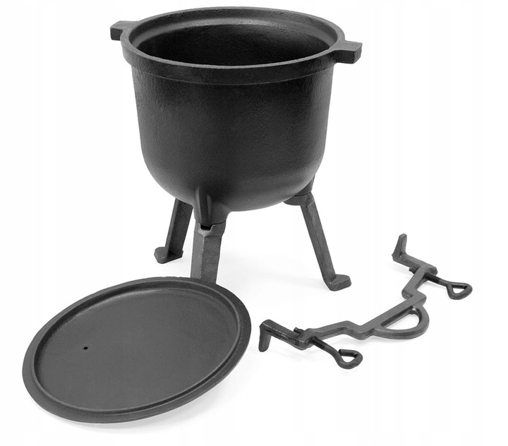 оригінальний котел Мейєрхофф виготовлений з найвищої якості з чавуну, стійким до найвищої температури y. Ця компанія вперше використала спеціальний вентилятор на обкладинці , що регулює тиск всередині котла, що робить його на 100% безпечним . Котл може стояти безпосередньо в багаттях, і завдяки зручному власнику його також можна повісити над вогнем . Продукт також має відкручені ноги , щоб котл міг бути розміщений у каміні або безпосередньо у вогнищі.