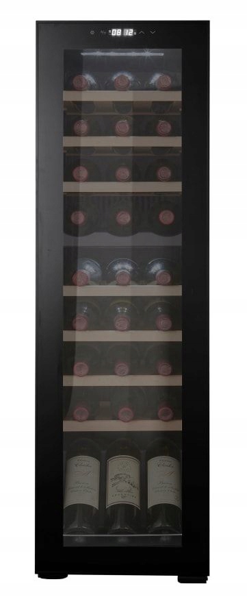 Охолоджувач вина вміщує до 27 пляшок і має дві незалежні температурні зони. Якщо ваш холодильник має незалежні зони, у верхній зоні можна встановити вищу температуру, ніж у нижній зоні, тож ви можете вибрати, чи бажаєте ви червоне чи біле вино зверху.