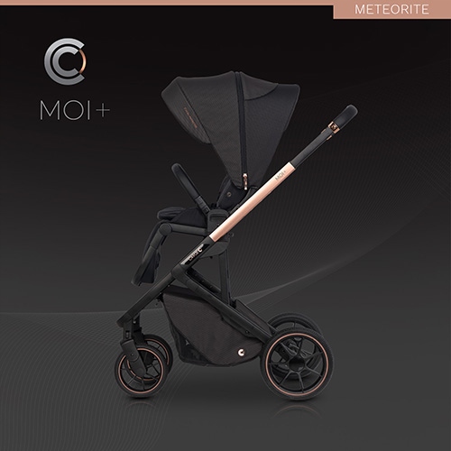 Сидіння MOI+ візок сертифіковано для дітей від народження до 22 кг. Він має дві м'які вставки, які можна видалити, коли дитина трохи більша. Новинка -це використання тканини, що не належить до ковзання, на сидінні, що заважає дитині ковзати. Тканина має силіконові бульбашки, які змушують дитину сидіти в оптимальному положенні, що знижує ризик дефектів постави в майбутньому. Сидіння можна встановити в обох напрямках, і візок також можна складати в обох напрямках. Сонцезахисний крем великий і має додаткову закриту секцію, яка захистить дитину від низькоопераційного сонця. Дизайнери також не забули про вентиляцію. Окрім типових шанувальників у кабінці Suncred, сидіння MOI+ має спеціальну вентиляційну систему в оболонці. Він має форму елегантного багажника, який зрештою повзунки повністю вибухають, перетворюється на дитину, щоб прокручувати. Набір з гондолою включає окрему дощову кришку та окрему сітку комарів, яка ідеально відповідає її формам.