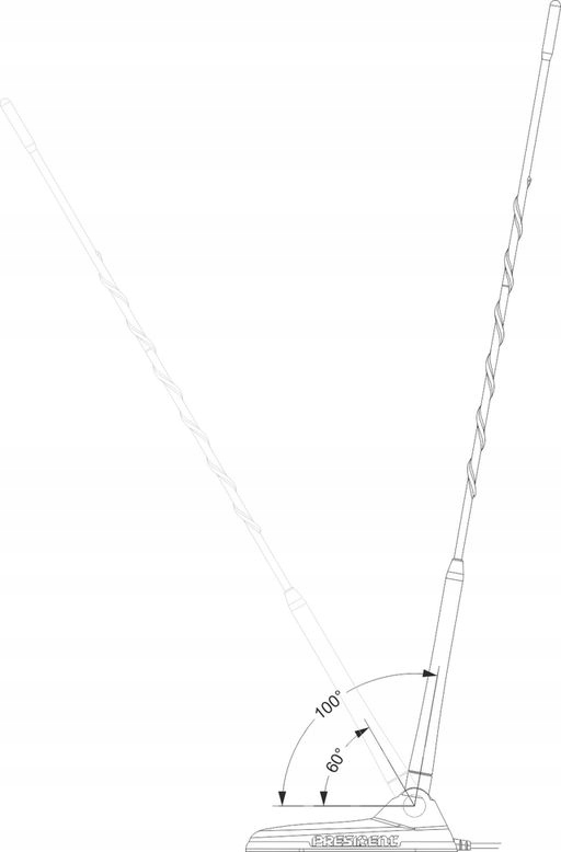 Антена President NewYork має шарнір, який дозволяє встановлювати випромінювач під трьома різними кутами. Одне з налаштувань дозволяє вкоротити антену до 43 см! Можливість налаштування такої невеликої спіральної CB антени є унікальною порівняно з іншими продуктами конкурентів.