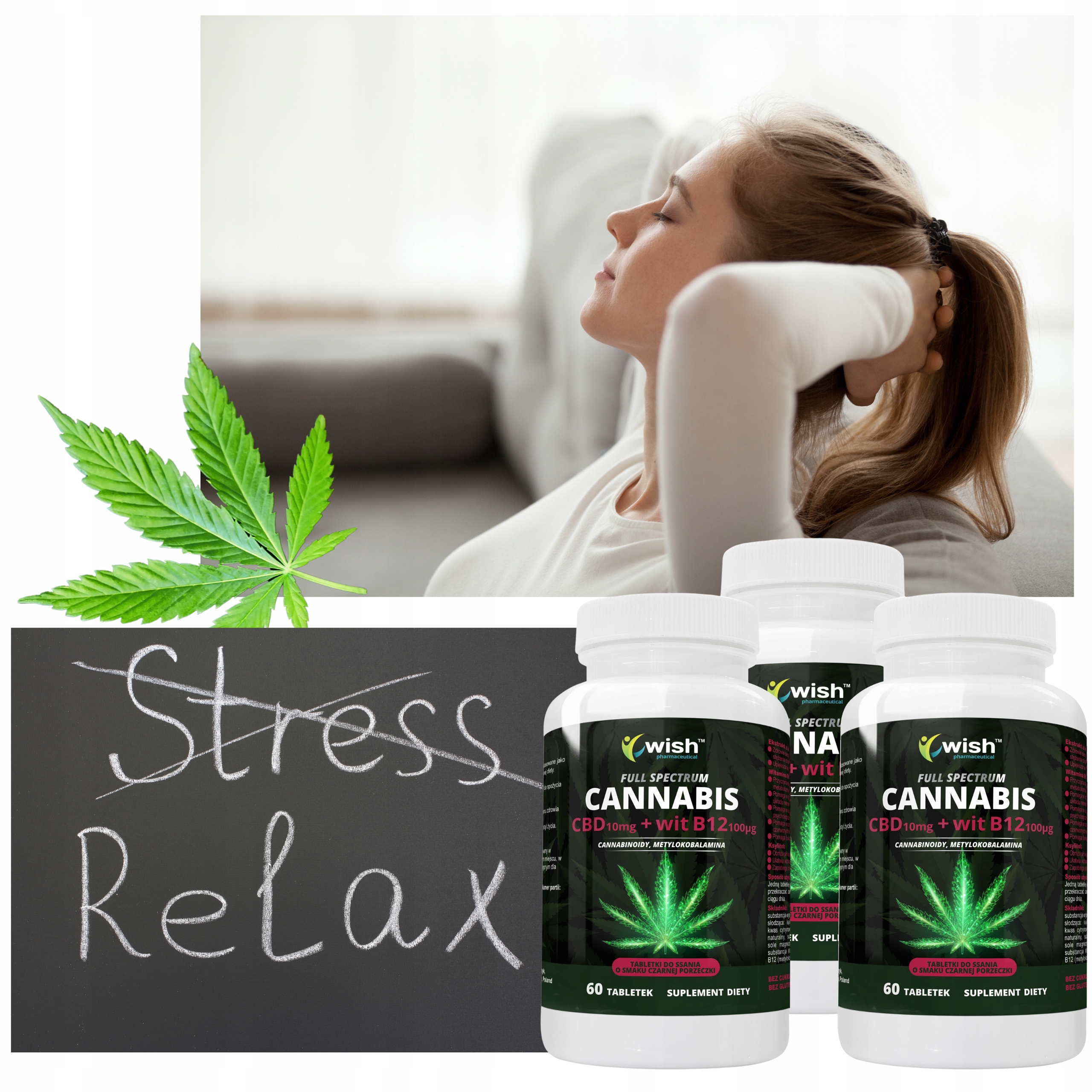 CBD 10mg + Witamina B12 METYLOWANA FULL SPEC 3x60T