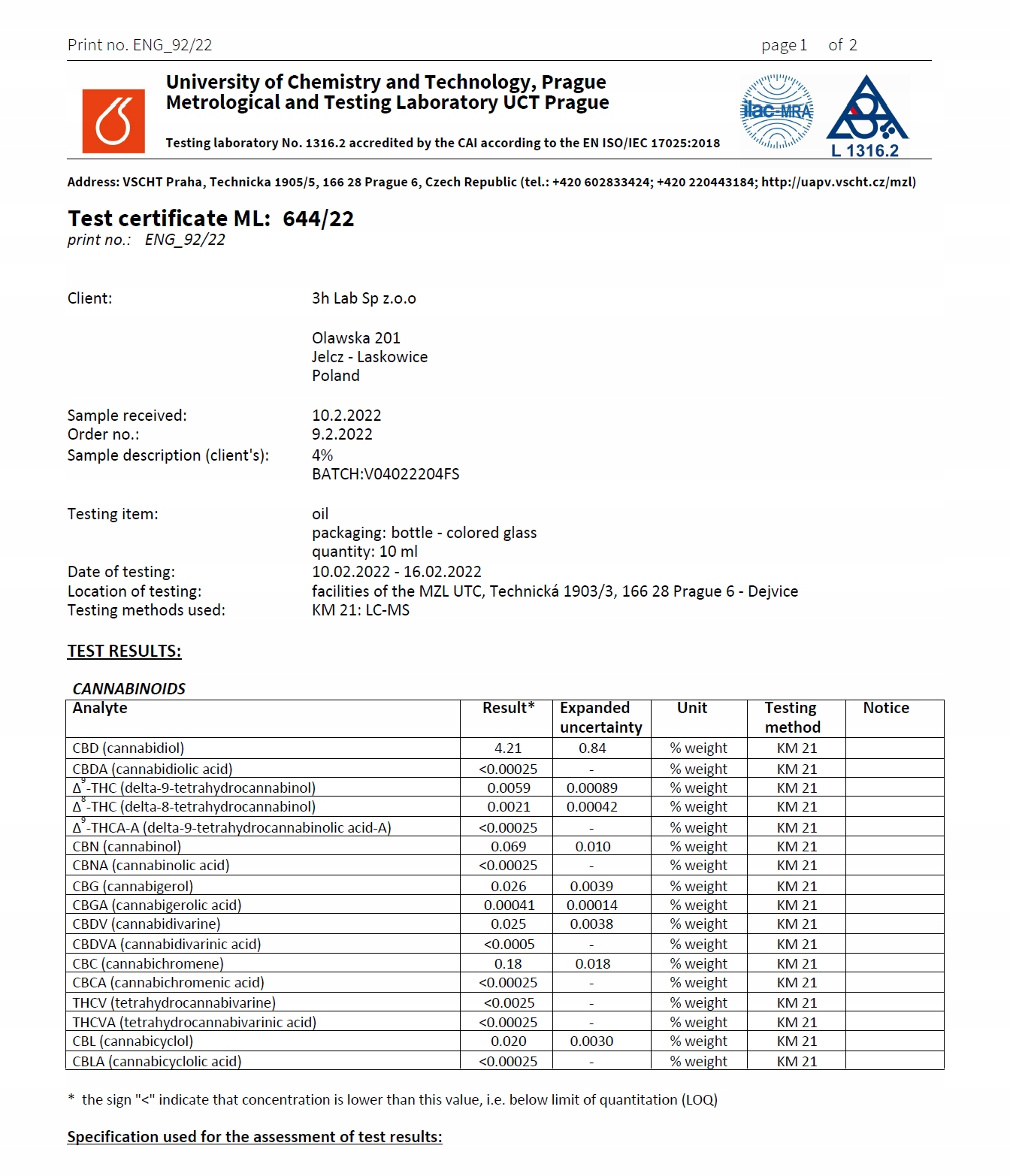 - лабораторна компанія 3H LAB Sp z o.o. o. o.,