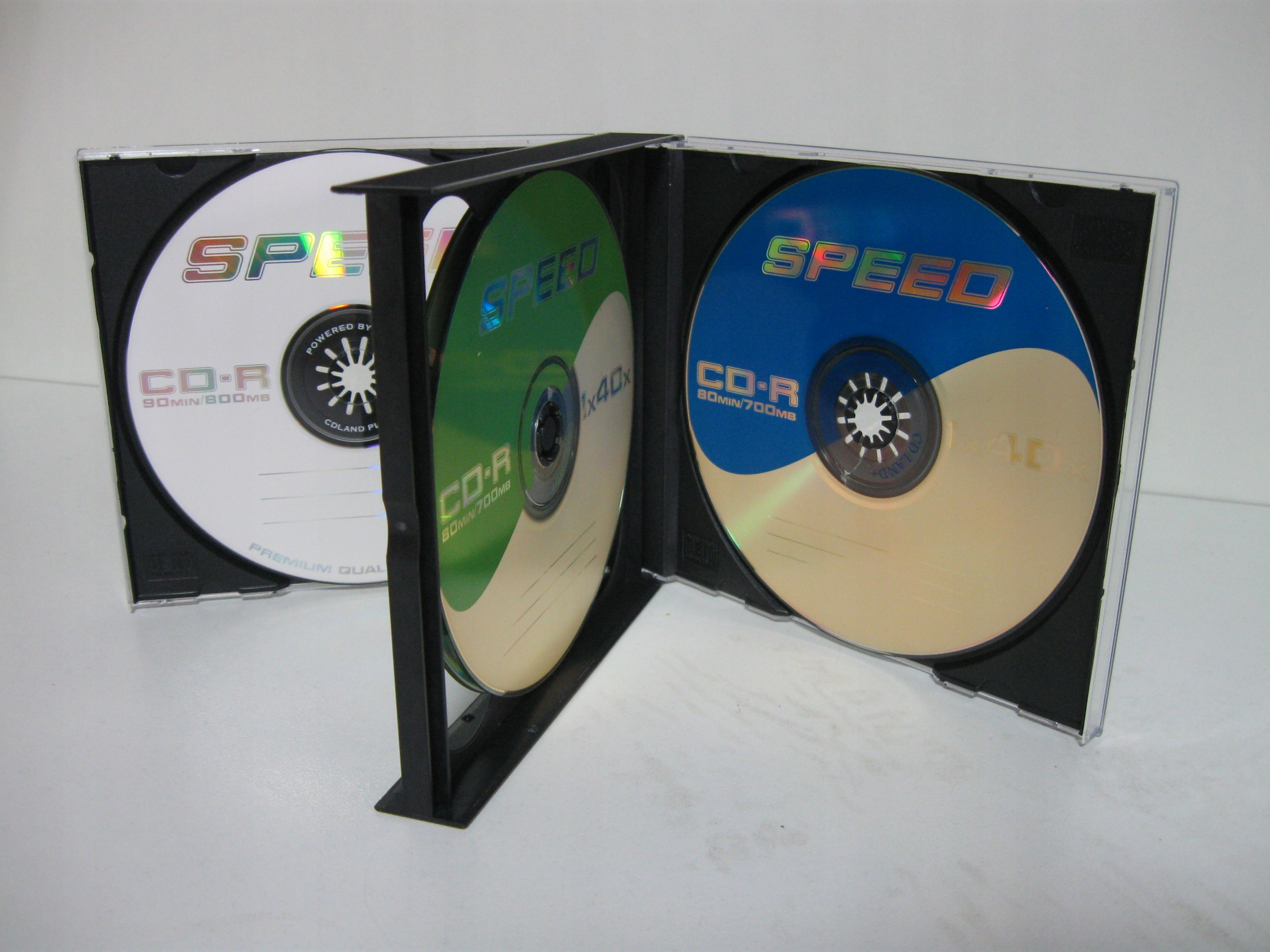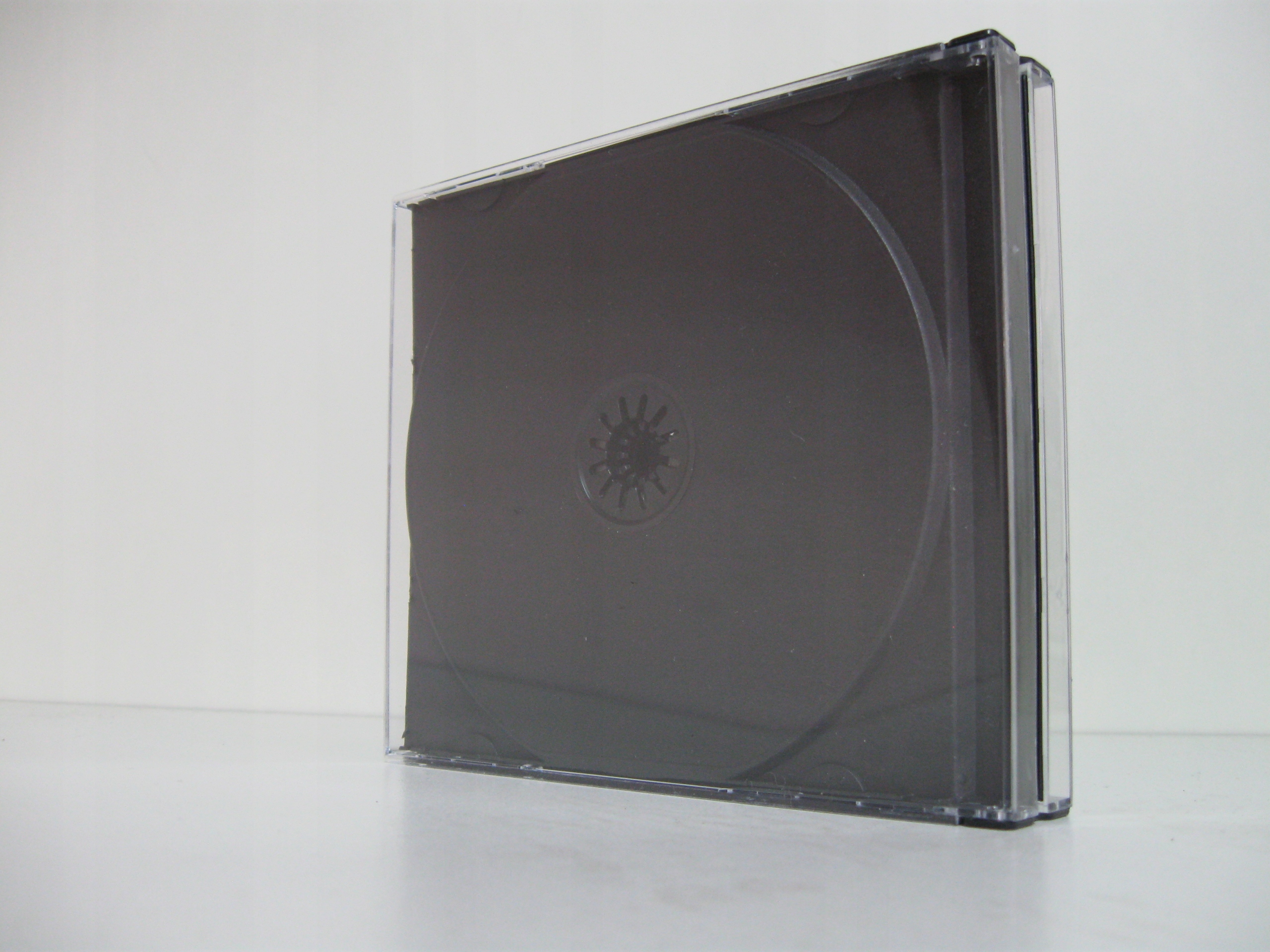 Коробка для чотирьох компакт-дисків виготовлена з ЧОРНОГО гнучкого пластику товщиною 22 мм.