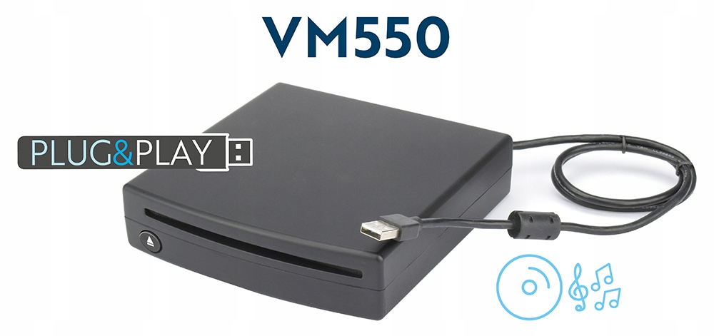 Портативний CD -програвач , призначений для автомобільних та мультимедійних станцій без цієї функції. Встановлення Plug & Play через USB -порт: