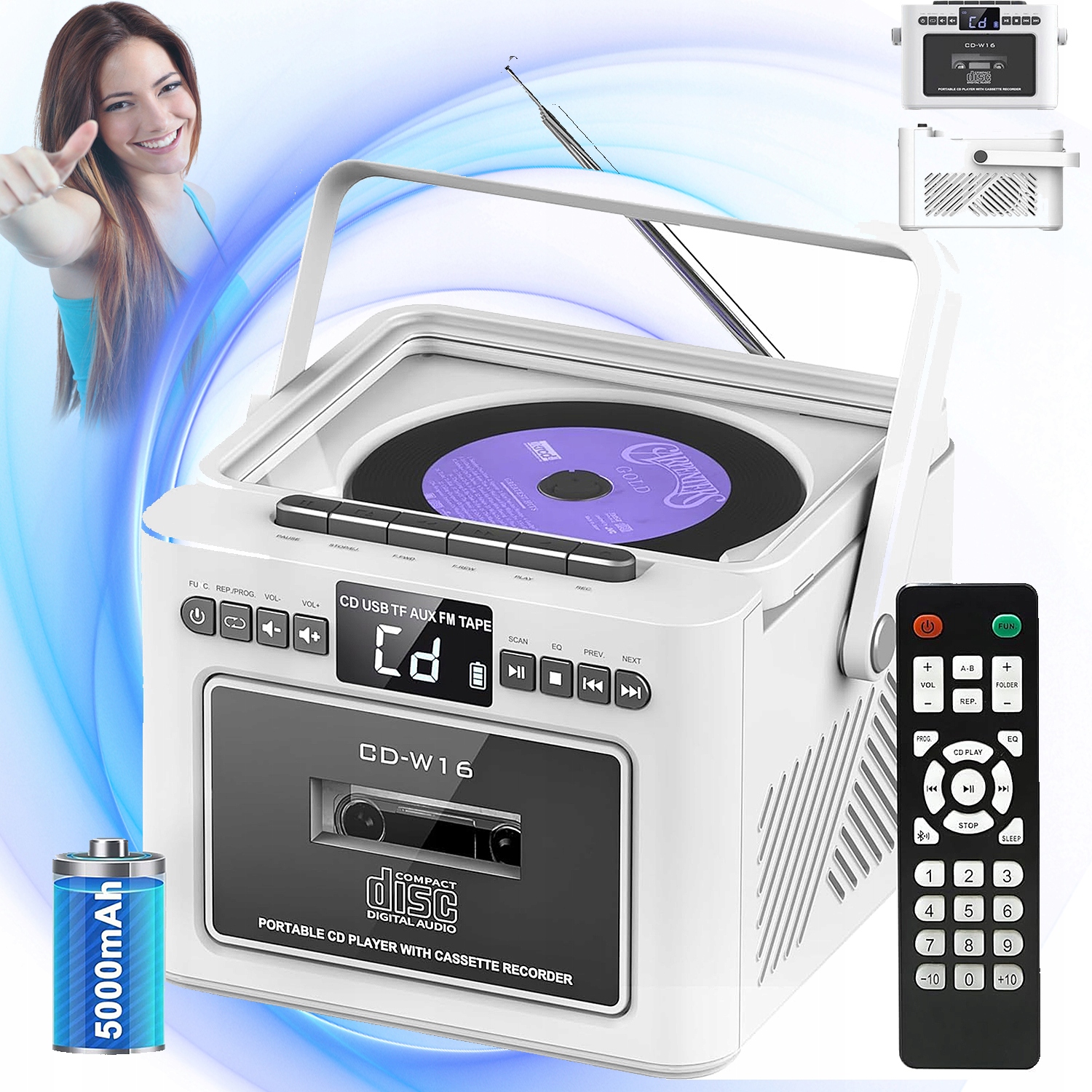 📻Цей програвач компакт-дисківз радіо пропонує кілька варіантів відтворення, зокрема CD, радіо, касети, Bluetooth 5.1, USB, AUX і SD-карта.