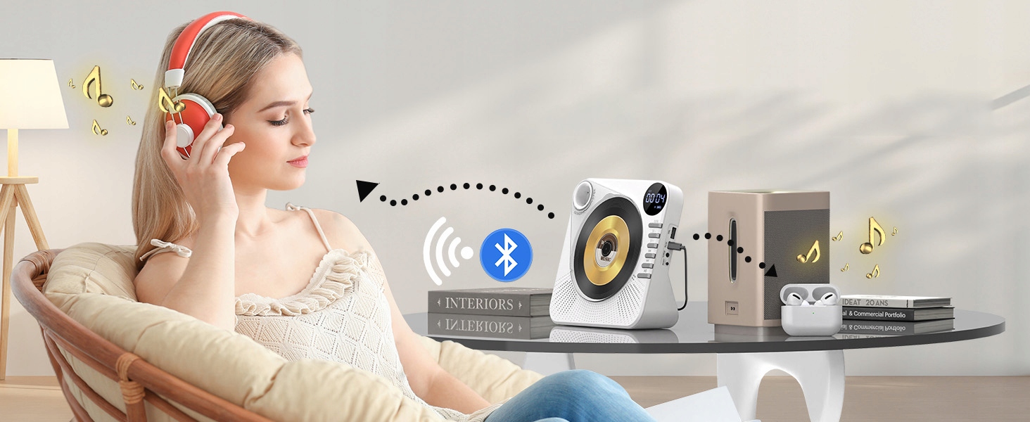 Оснащений Bluetooth 5.0, цей універсальний плеєр пропонує подвійне бездротове підключення – передачу аудіо на навушники чи динаміки Bluetooth або отримання сигналів зі смартфонів, планшетів і ноутбуків. Крім того, ви можете відтворювати музику через USB (підтримує формати MP3/WMA до 128 ГБ) або вхід AUX.
