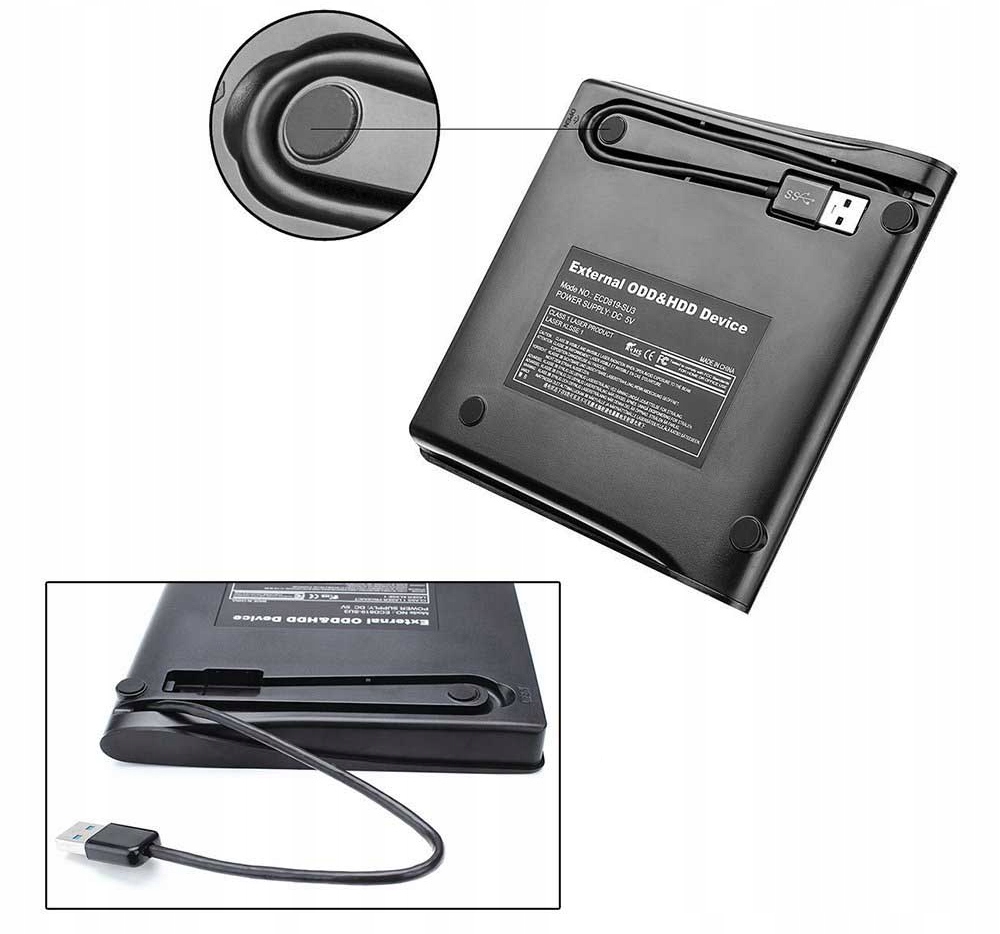 ⭐ Портативний зовнішній оптичний привід CD/DVD. Для зв'язку з комп'ютером, живлення через порт USB. У пристрої використовується технологія Plug & Play.