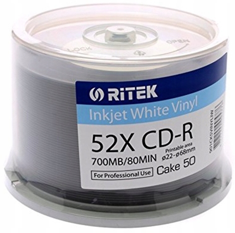 Ritek TraxData CD-R White Vinyl Injet Printable - Ми можемо надрукувати верхню поверхню диска розміром 22~68 ммна струминному принтері. Диск має чорну поверхню для запису