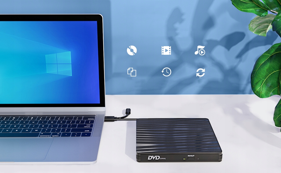 Цей привід DVD живиться від портів USB 3.0 та Type-C, жоден контролер DVD або додаткове джерело живлення не потрібно. Цей зовнішній диск CD може використовуватися для перегляду фільмів, запису файлів, встановлення програмного забезпечення або створення резервних копіїв компакт -дисків, теперішніх святкових фотографій, колекції MP3 або цілих фільмів тощо, які можуть задовольнити всі ваші потреби для запису та відтворення
