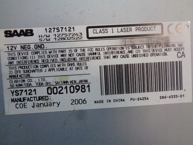CD Reader Saab 9 3 02-07 12757121
