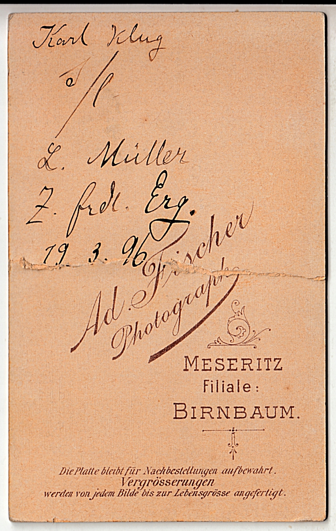 CDV Fischer Meseritz Międzyrzecz Портрет юнака 1896 року.