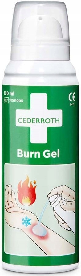 CEDERROTH Burn Gel (REF 51011005) гель-спрей для опіків. На водній основі з алое швидко та ефективно знімає біль і зменшує набряк при опіках. При нанесенні на місце опіку гель запобігає поглибленню рани та прискорює її загоєння. Опікові рани вимагають швидкого реагування, тому добре завжди мати його при собі вдома, на роботі чи під час подорожі - особливо в місцях, де немає доступу до проточної води. Ідеально підходить для: ран після опіків вогнем або хімічними речовинами, гарячою водою чи парою, опіків, спричинених електрикою чи сонячним світлом, а також для свербіння, спричиненого кропивою, медузами чи укусами комах.