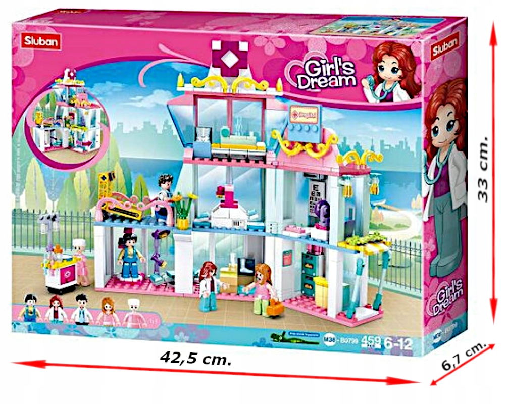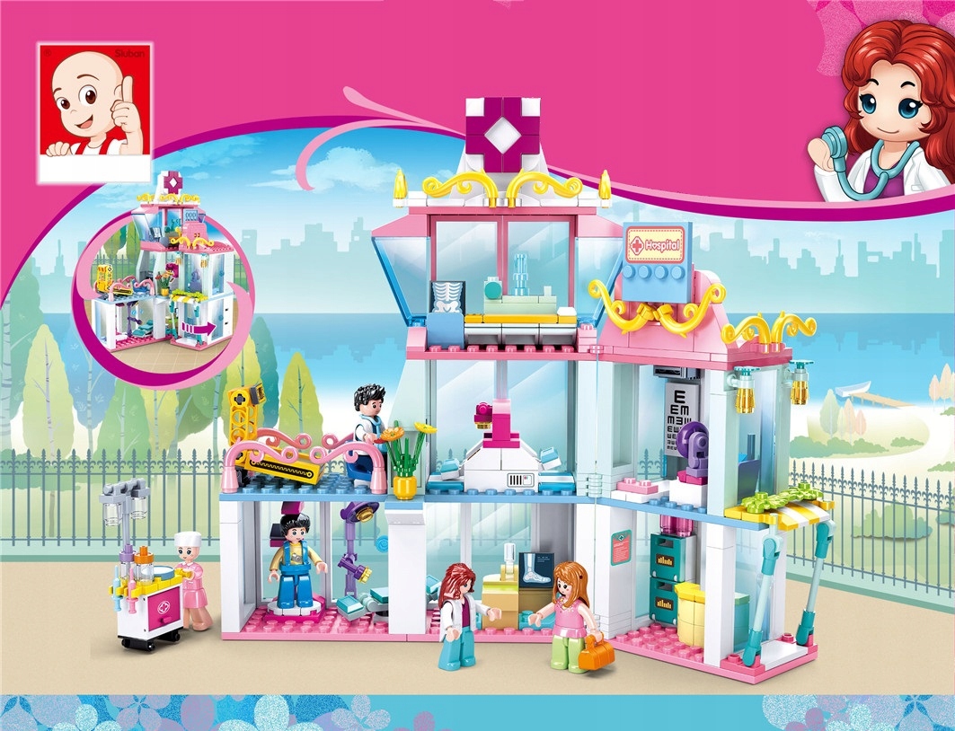 Знайомтеся з унікальним набором Sluban Girl's Dream - Hospital / Clinic, в якому молоді будівельники можуть виступати в ролі лікарів, медсестер і пацієнтів! Ця колоритна триповерхова будівля з повним устаткуванням – гарантія творчих і розвиваючих розваг на довгі години.