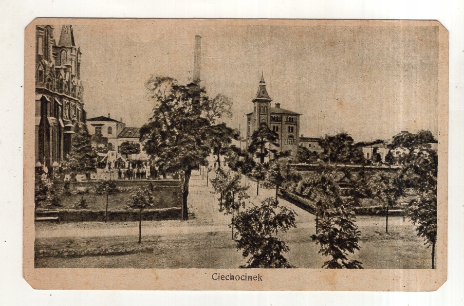 Цехоцинек - Площа вулиця перед костелом - близько 1920 року