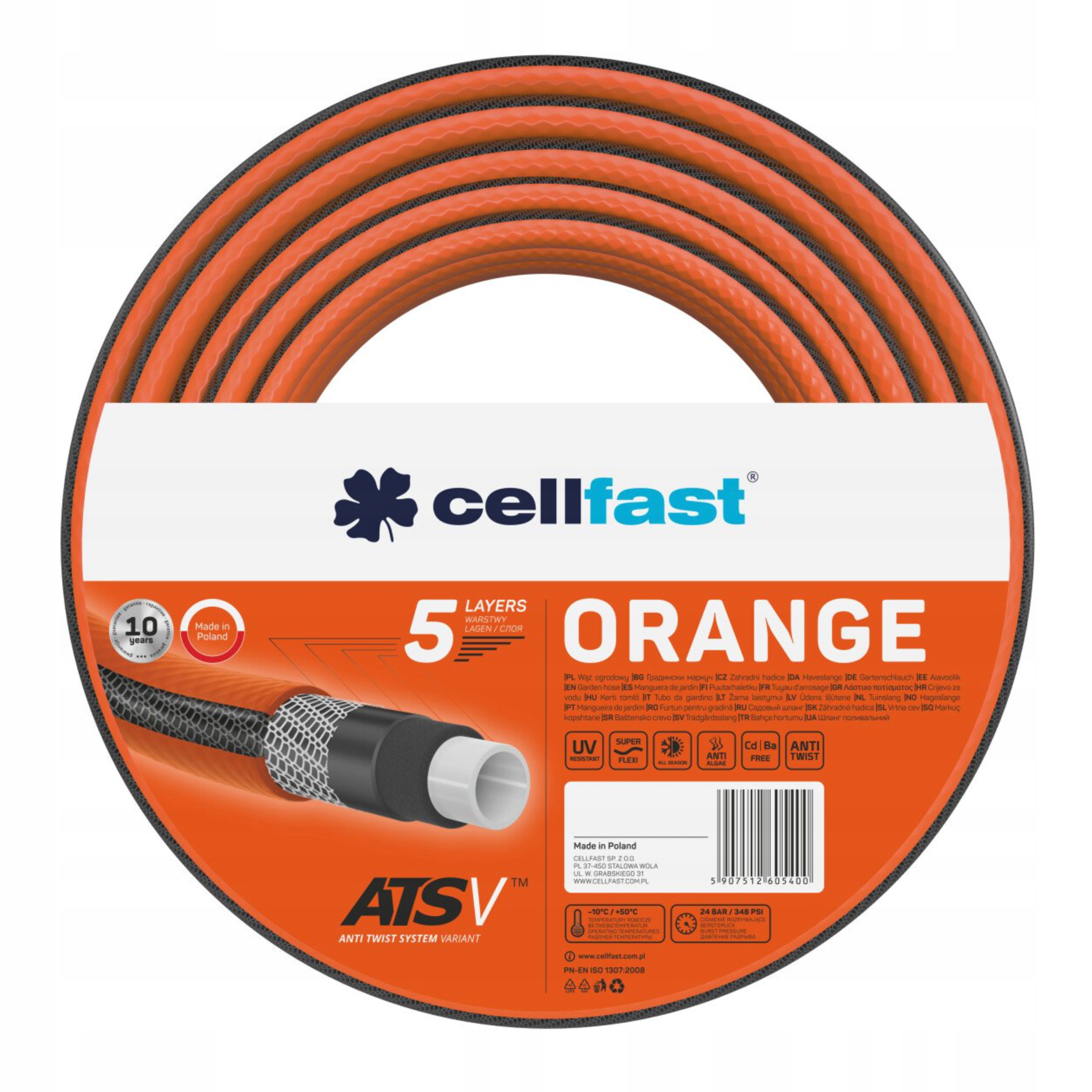 CELLFAST ORANGE ATSV САДОВИЙ ШЛАНГ 5 ШАРОВ 1/2" 15 м 24 БАР ПОЛЬСЬКИЙ ПРОДУКТ