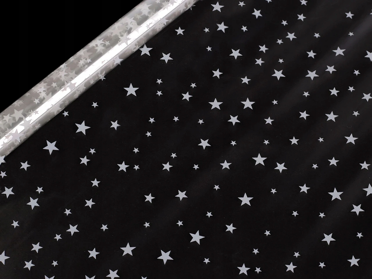 Целофан з принтом, в який можна загорнути подарунки, подарункові кошики, посилки та оформити їх. Він прозорий і блискучий. Діаметр сердечок 0,8 - 1,5 см. Діаметр зірочок 0,5 - 1 см.