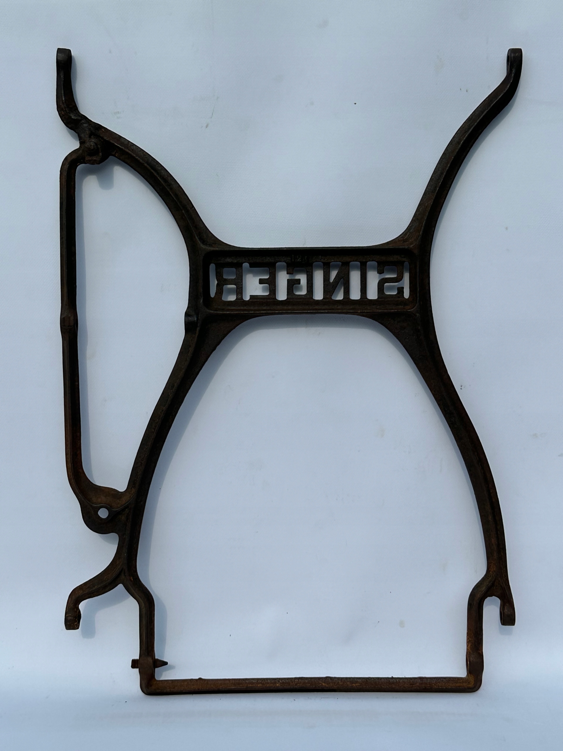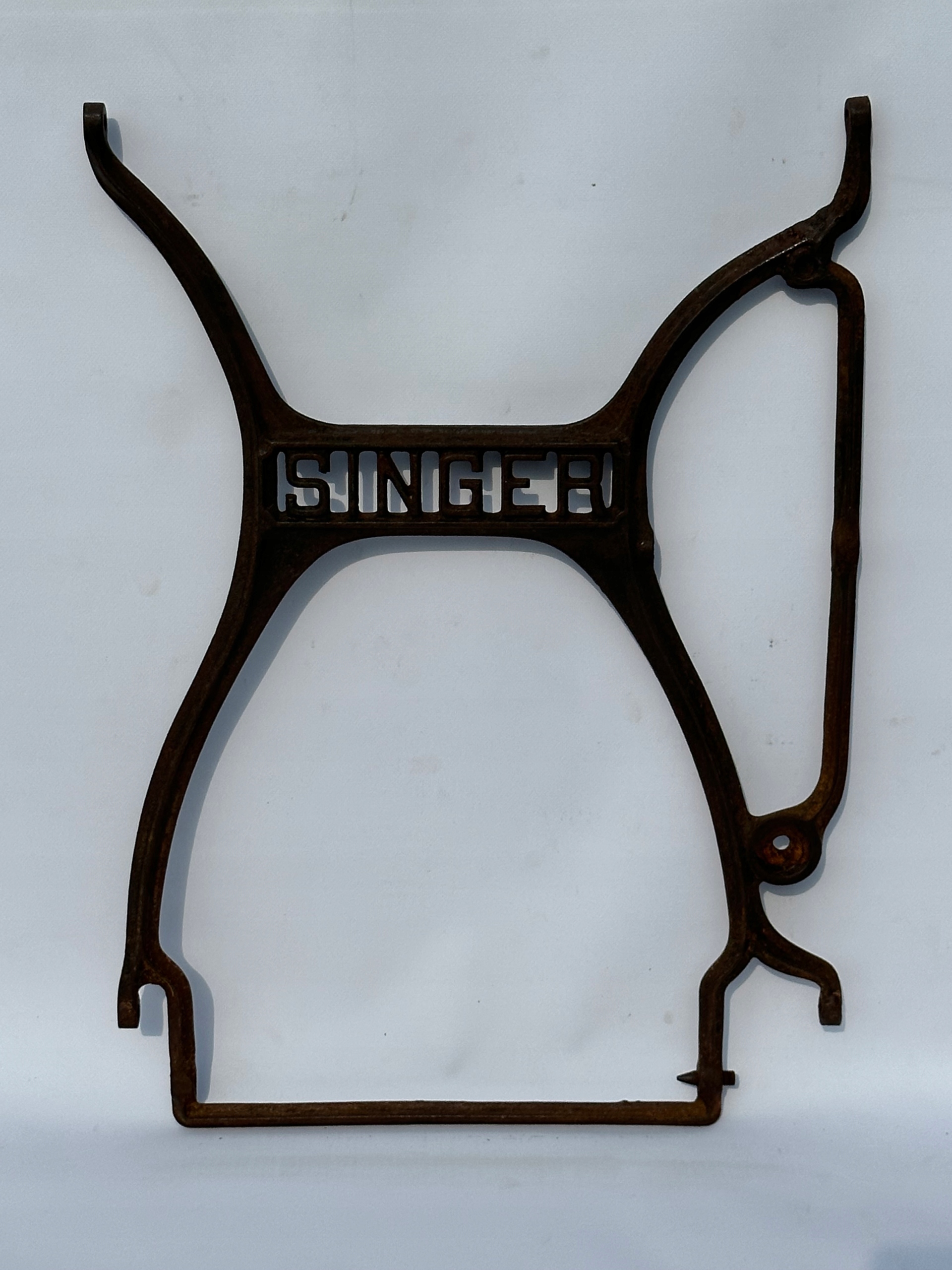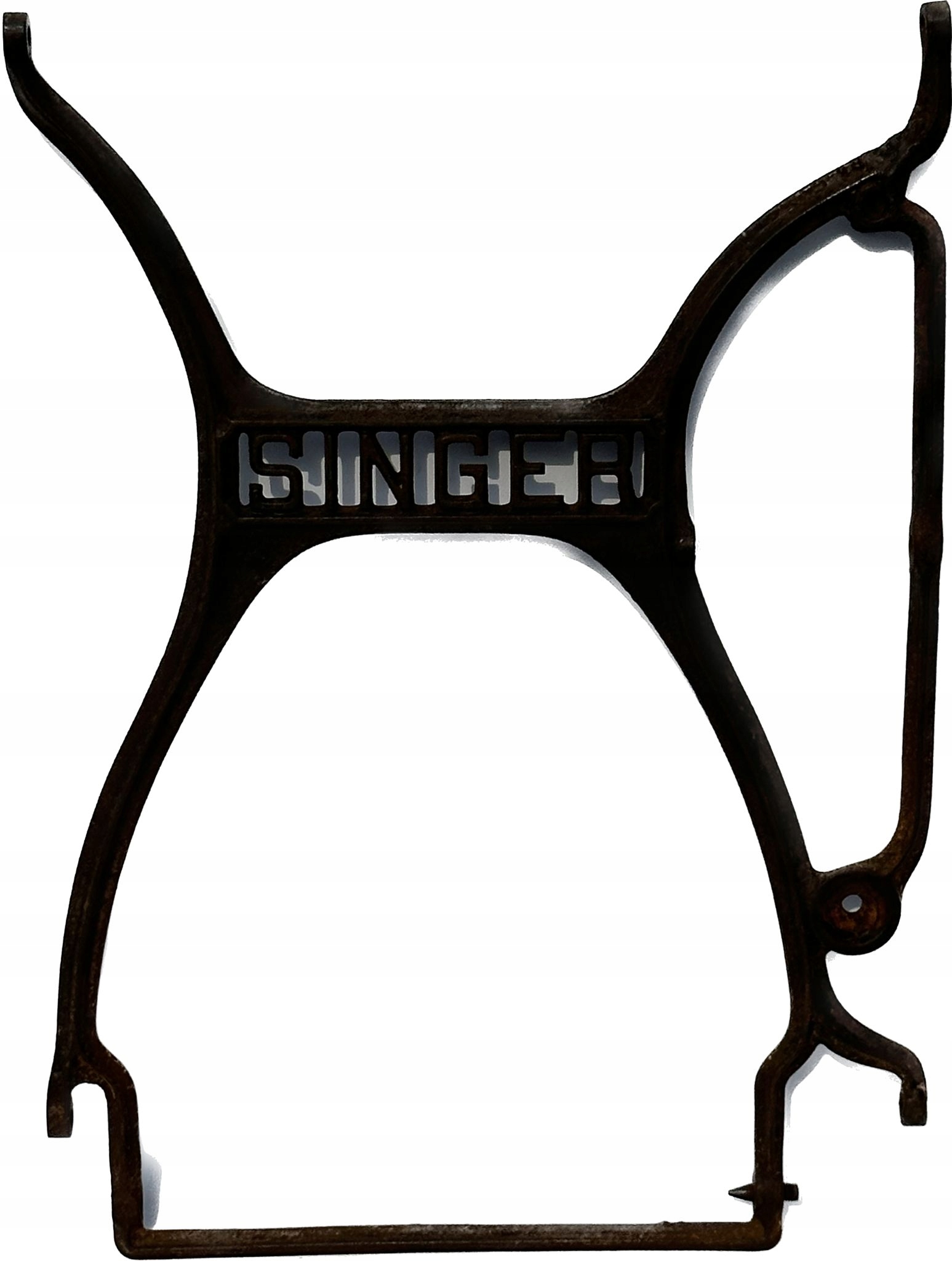 Предмет продажу - чавунна центральна частина з основи старої швейної машинки SINGER. Цікавий візерунок, гарно оформлено. Стан - як на фото. Елемент має старий зварний шов (права верхня частина, фото № 1).