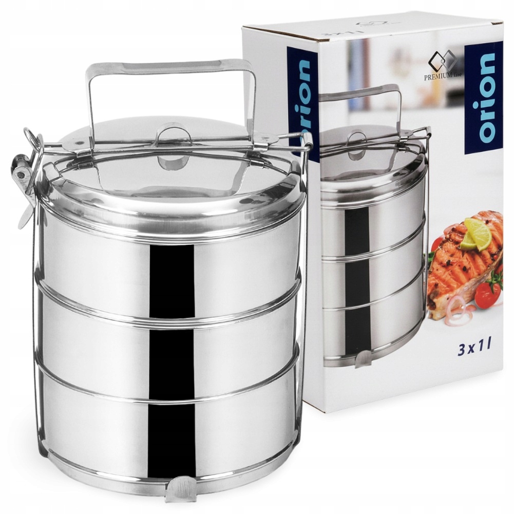 Обідня їдальня для транспортування їжі. Виготовлений з безпечних для здоров'я та харчових продуктів матеріалів. Він має три контейнери, які дозволять вам правильно транспортувати їжу. Контейнери з'єднуються за допомогою затискача, тому їх зручно складати. Ідеально підходить для походів, кемпінгу, гірських експедицій та інших подорожей. Влітку ми можемо використовувати його для зберігання та перенесення морозива, напр. під час садових вечірок. Оригінальна продукція чеського бренду Orion. Виготовлена за європейськими стандартами.