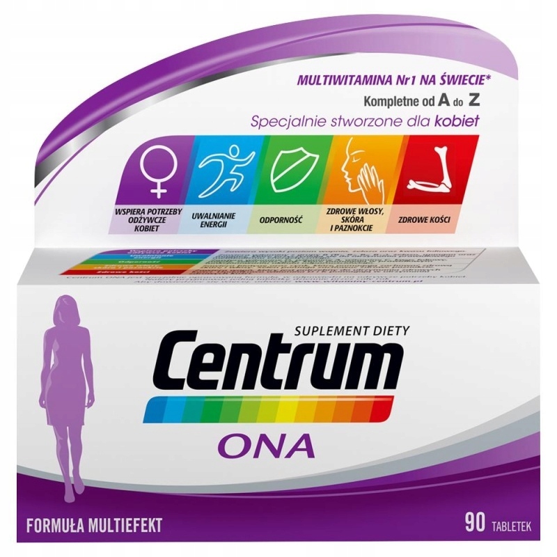 Centrum Ona - це повний комплекс вітамінів і мінералів для жінок, що містить 24 інгредієнти, важливі для їхнього здоров'я та гарного самопочуття.