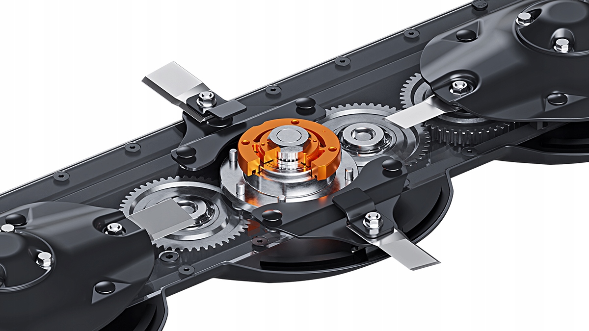 різання смужки , завдяки піднесеним колесам передач, завжди перекриваючи 2 зуби, які додатково заземляються, перетворюються на проблеми, що не містить проблеми та спокійну передачу живлення між двома дисками. Стікова форма смуги впливає на зменшення споживання палива під час роботи, таким чином, попит на потужність трактора зменшується. Це покращує ефект різання. Додаткові доступні високі ковзання, які здатні дистанціювати смужку на додаткові 20 або 50 [мм], від землі. Це використовується в нерівних і кам'янистих луках. Це скорочує можливий час простою та полегшує обслуговування. Спеціально розроблений ключ дозволяє швидко замінити ножі 120 [мм].