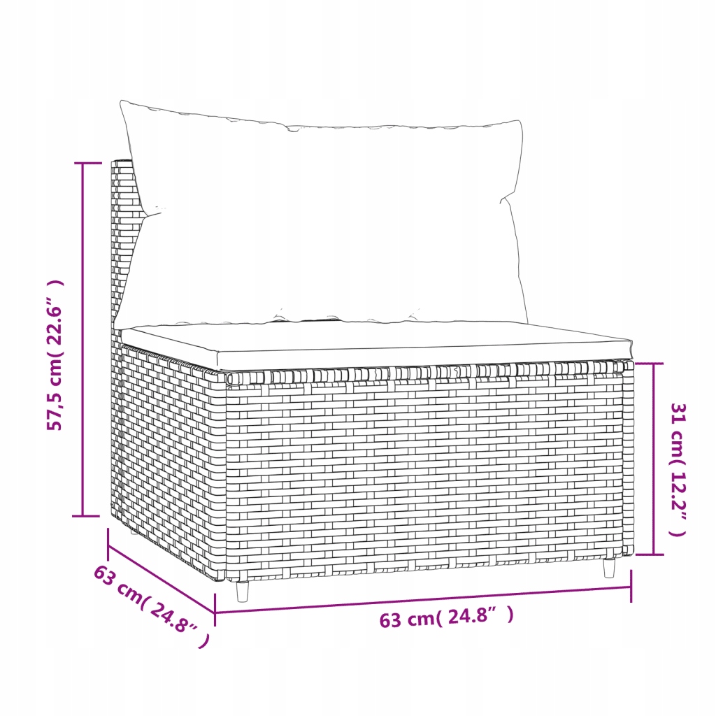 Центральний диванний модуль з подушками, чорний, поліротанг