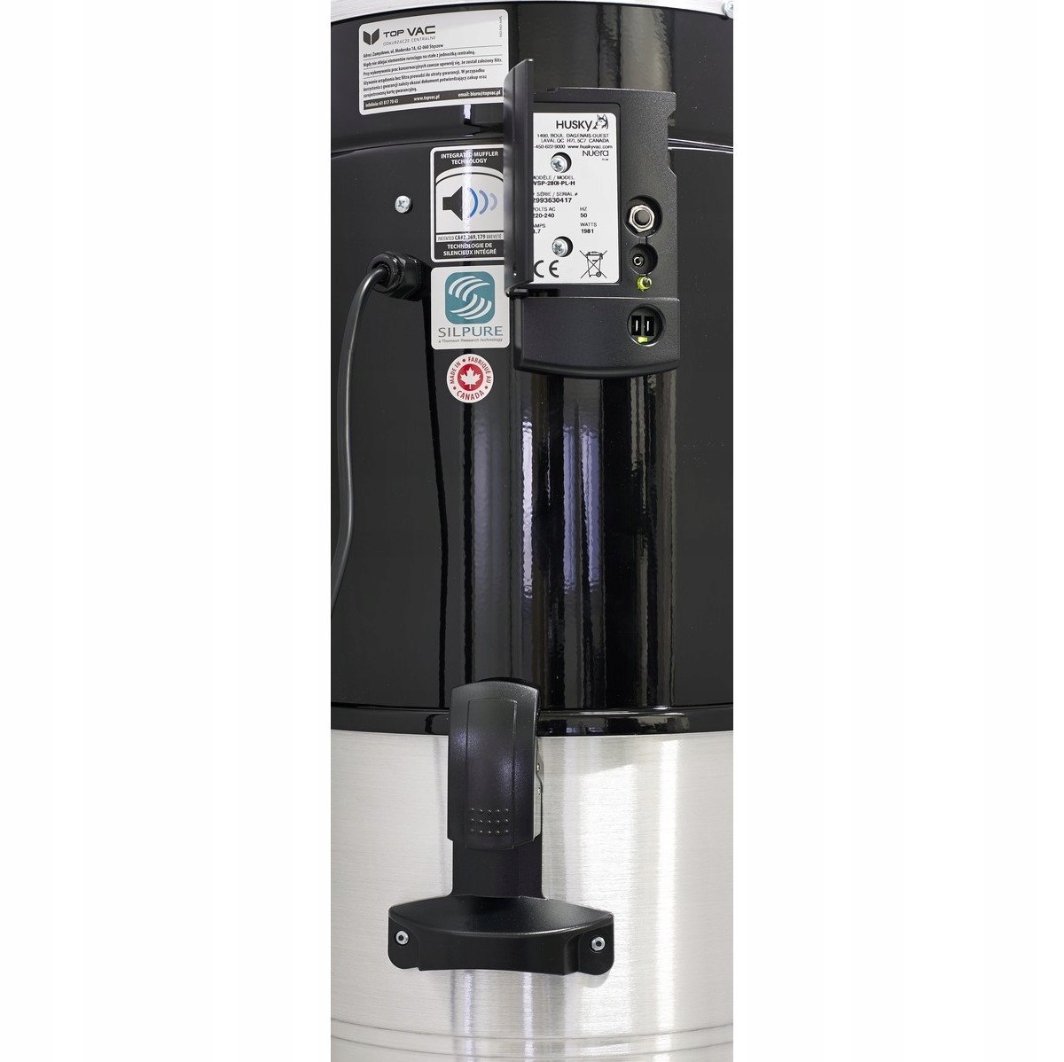 Пилосос Husky Whisper2 рекомендований для будинків з максимальною площею 500 м2 з установкою, що складається з максимум 13 точок всмоктування.