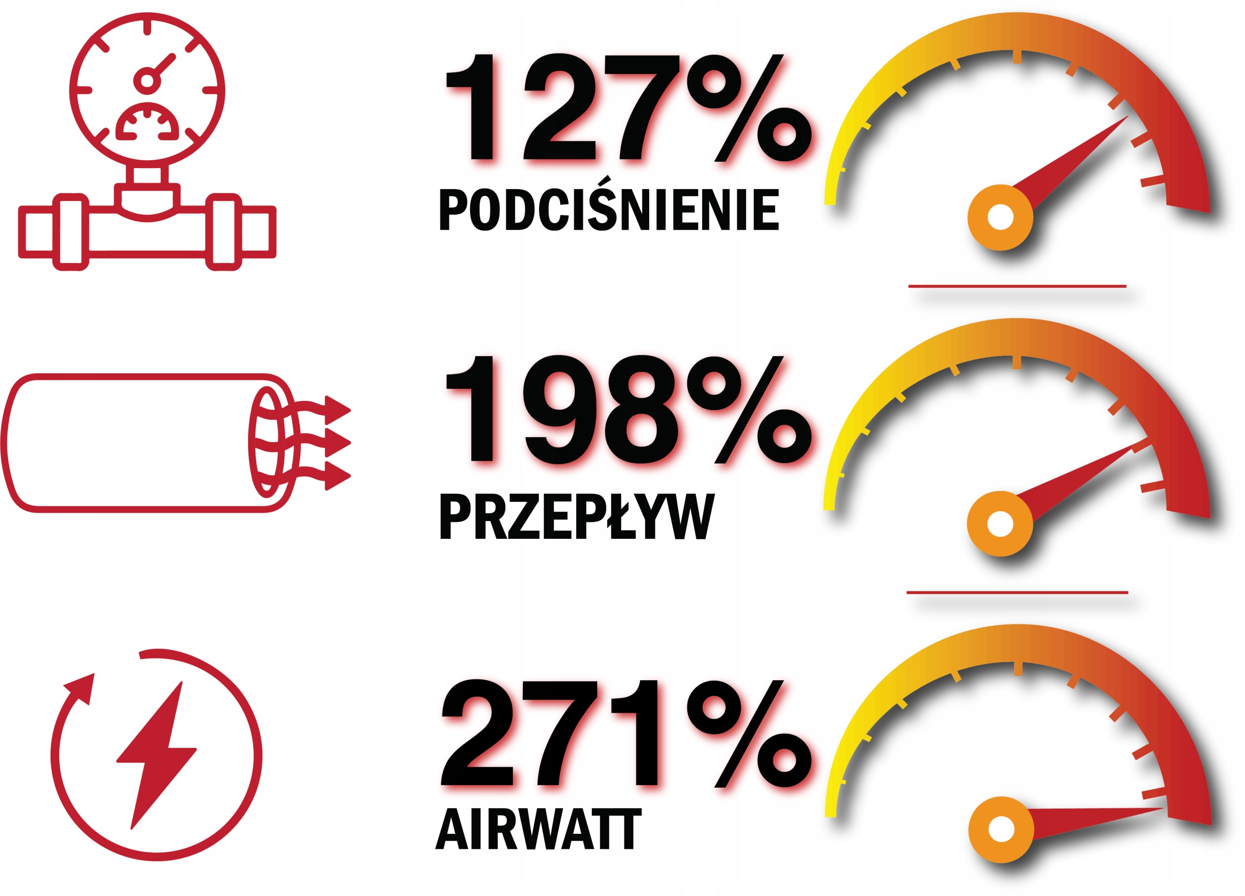 ✔️досягає негативного тиску 23 кПа, завдяки якому можна ефективно чистити товсті килими. h2> ✔️Потік повітря досягає значення аж 69,2 л/с - це дозволяє зручно та швидко очищати тверді поверхні, такі як паркет, панелі чи кераміка