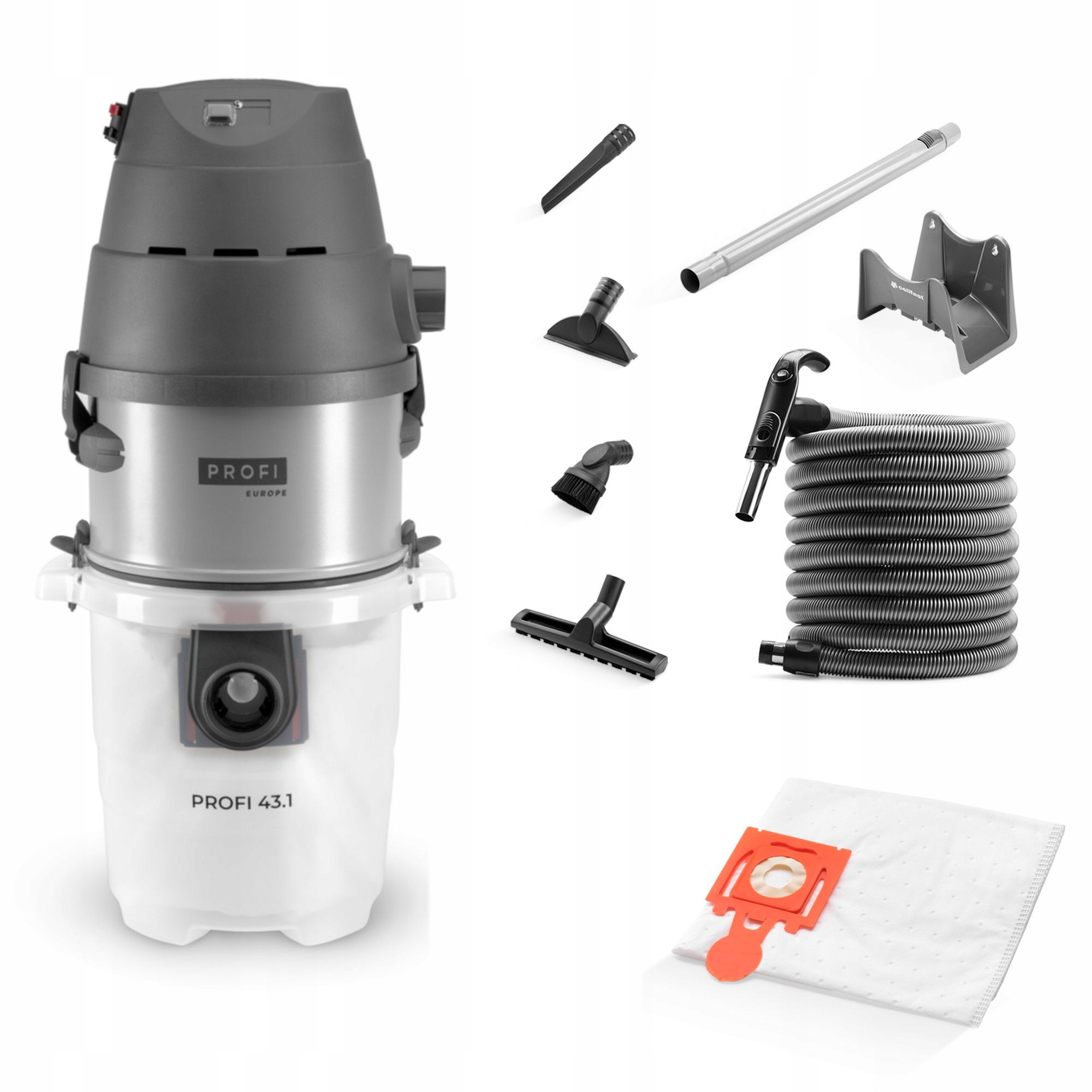Пилосос PROFI 43.1 оснащений триступінчастою турбіною Ametek By-Pass з тривалим терміном служби. Він має гібридну фільтрацію завдяки використанню синтетичного мішка, який затримує 99% більших забруднень, і поролонового фільтра, оснащеного функцією уловлювання частинок пилу, що додатково заглушує пристрій. ПРОФ| 43.1 призначений для будинків з максимальною довжиною магістрального кабелю до 70 м і 12 всмоктуючими розетками. ПРОФ| 43.1 має універсальну систему підключення всмоктувальної та нагнітальної установки з правого або лівого боку.