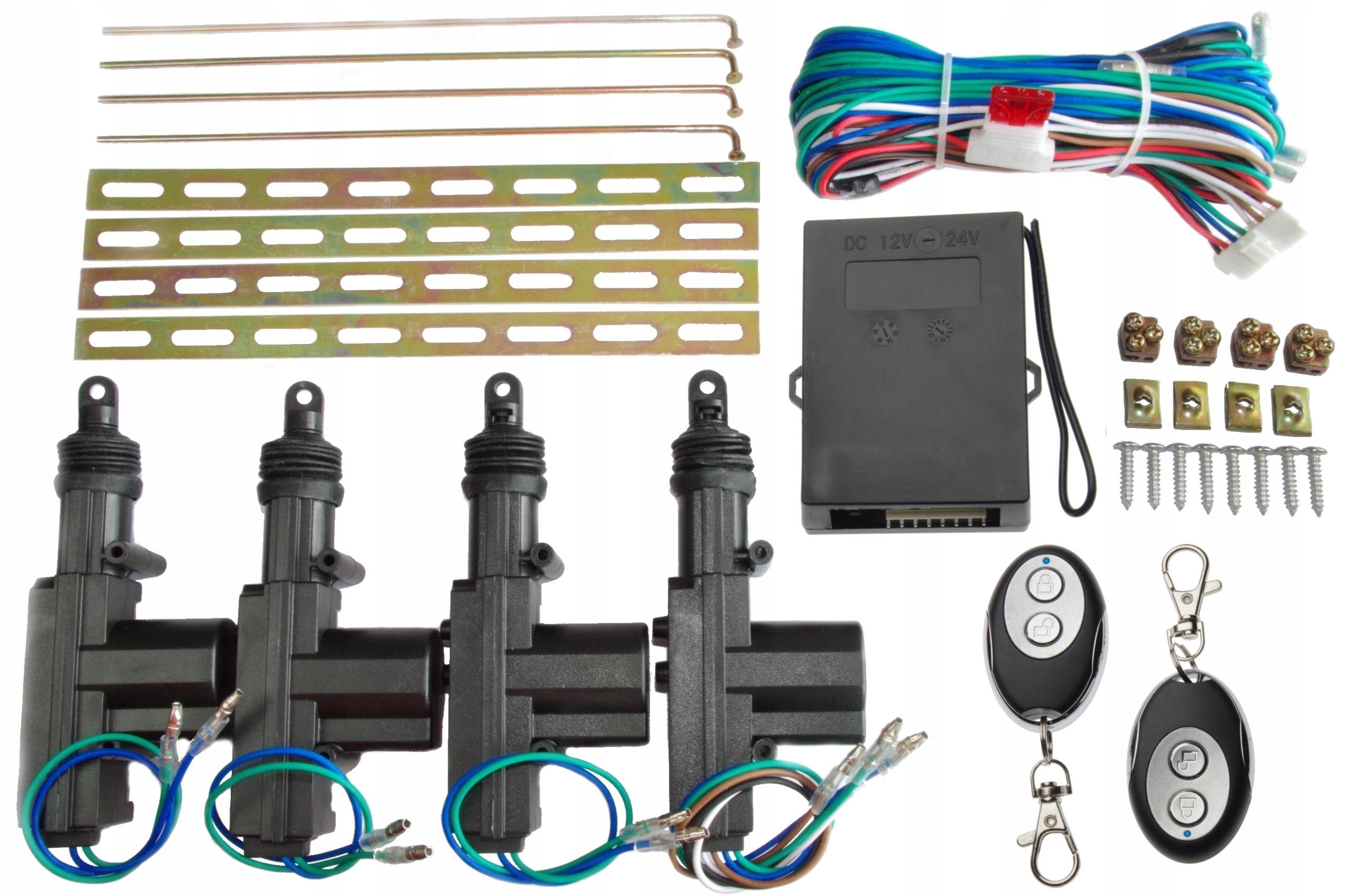 Повний комплект універсального центрального замка BLOW на 4 двері, керований пультом. Контролер дуже простий в установці. Для електричного підключення потрібні лише 2 дроти (+12 В і земля). Замком можна керувати ключем від водійських дверей або пультом. Також має додатковий вхід для управління з іншого пристрою (сигналізація, вимикач і т.д.).