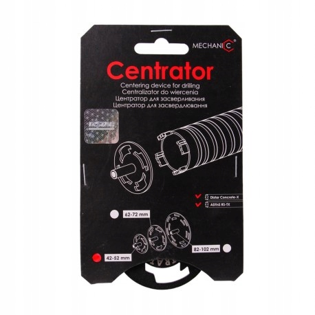 Центрувальні свердла. Всі майстри знають, як важко почати при сухому свердлінні бетон, цегла. Сегменти свердла відхиляються вбік і виникають сильні вібрації, які руйнують поверхні свердління. У більшості випадків мова йде про приміщення з обробкою, де це неприпустимо.Механічні центратори повністю вирішують цю проблему. Просвердлите отвір в стіні за допомогою твердосплавного свердла діаметром 12-14 мм. Розташуйте центральні лінії на сегментах і вставте центруючий штифт у просвердлений отвір. Свердлити в безударному режимі на глибину 4-8 мм. Потім продовжуйте свердління як зазвичай. Край отвору залишається рівним, гладким і чистим навіть при свердлінні керамічної плитки. Ідеальний результат!