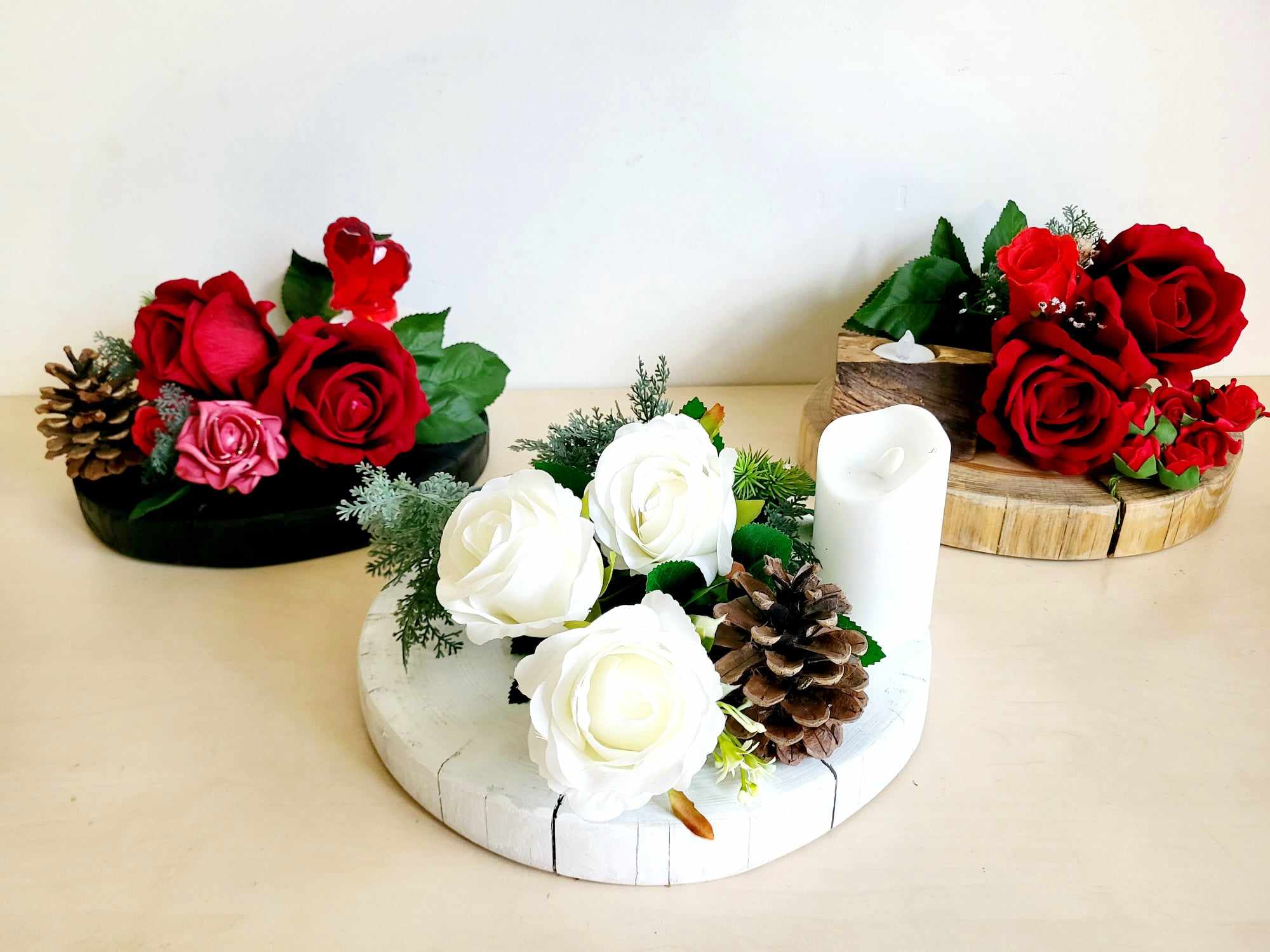 Красиві дерев'яні композиції з трояндами і лампадкою.
