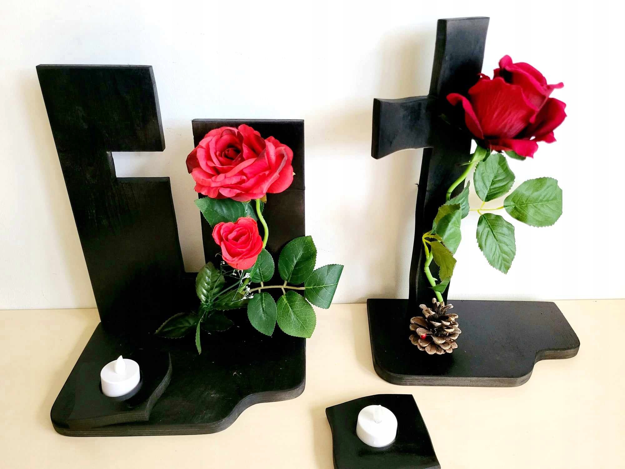 Дерев'яна композиція надгробка з трояндою та вигравіруваними вогнями - це продукт, створений від початку до кінця польським виробником.
