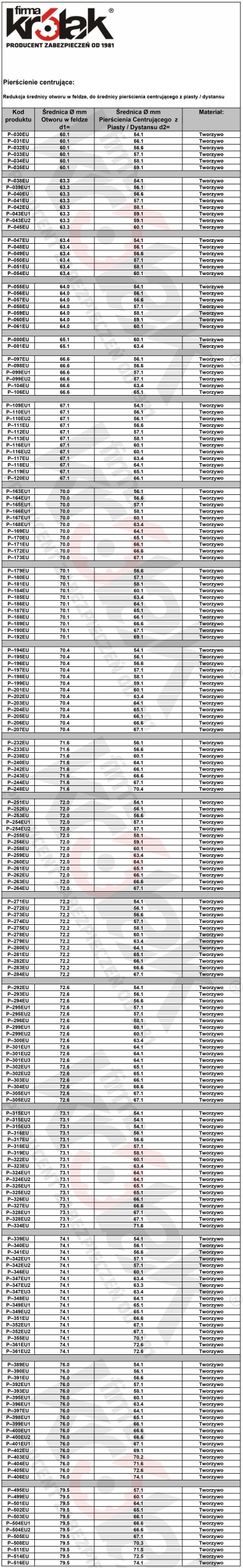 ЦЕНТРОВІ КІЛЬЦЯ EU 76.0 / 67.1 та ІНШІ...