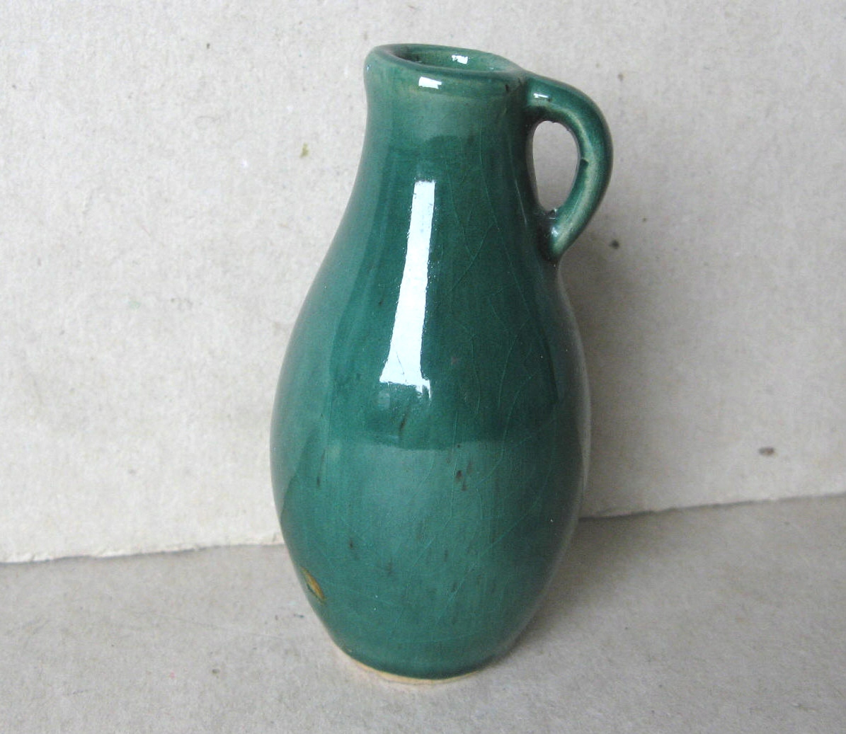 Cepelia CERAMIKA BIAŁYSTOK : WAZON wazonik z USZKIEM zielony MALUSZEK __!!!