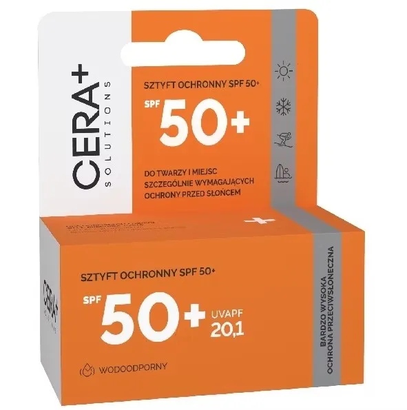 Cera+ Solutions Protective Stick SPF 50+ призначений для захисту шкіри обличчя та тіла від шкідливого впливу сонячних променів як влітку, так і взимку. Підходить для чутливої шкіри, яка потребує дуже високого захисту від сонця. Містить фотостабільні UVA та UVB хімічні фільтри нового покоління. Водонепроникний.