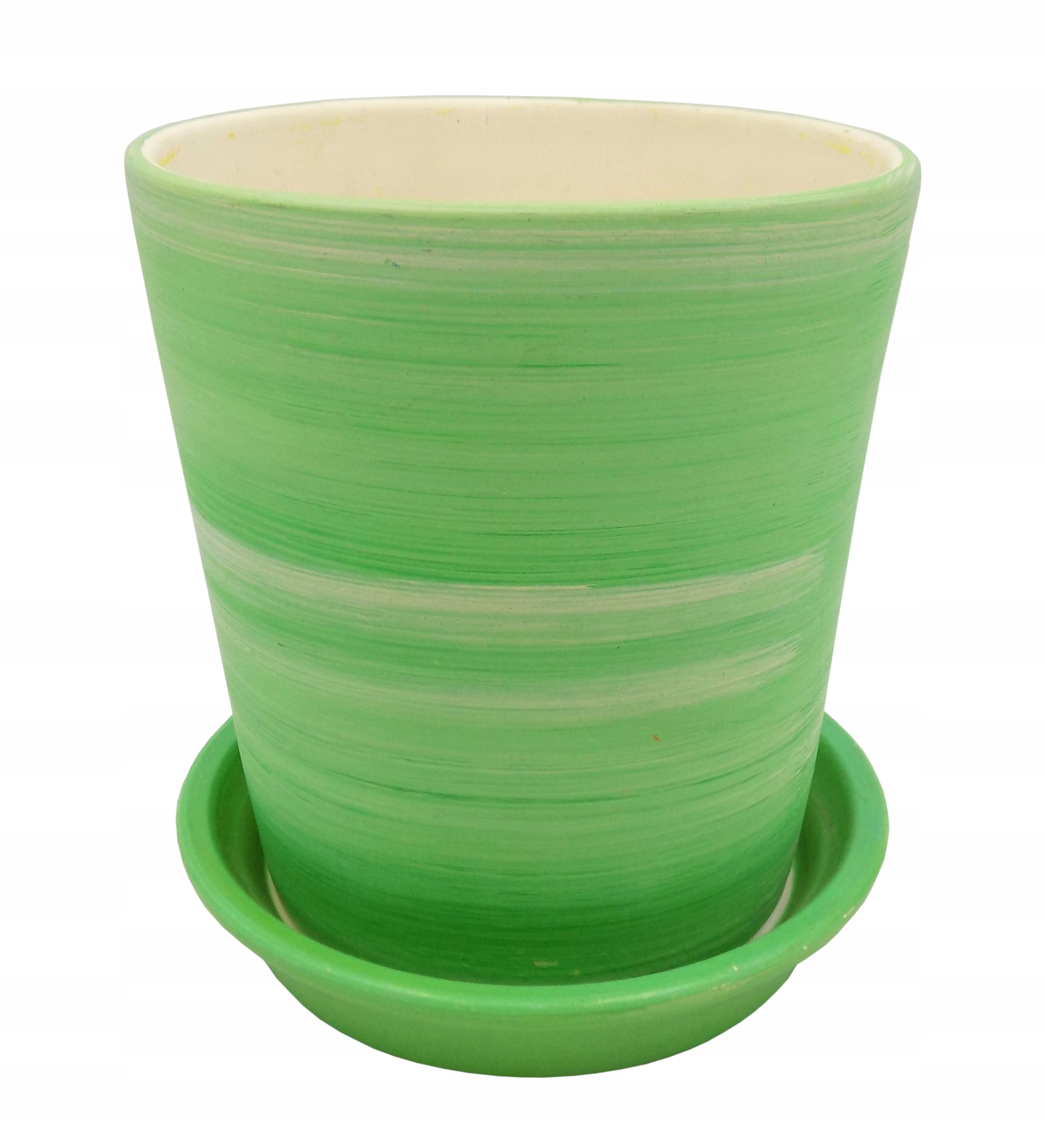 Керамічний горщик для квітів з блюдцем. Розміри; висота 13,5 х 13 см. Сліди використання.